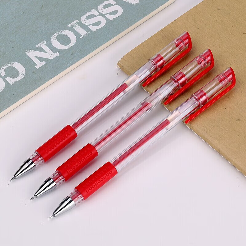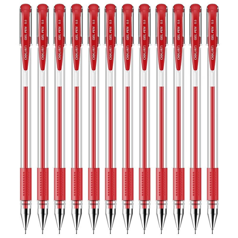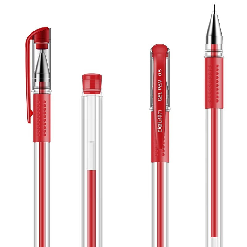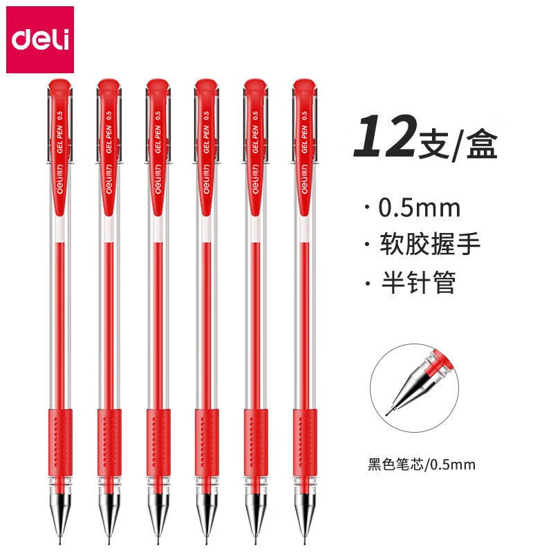 得力(deli)6601中性笔半针管黑色中性笔水笔签字笔办公用品学生用笔 红色 12支/盒 自营