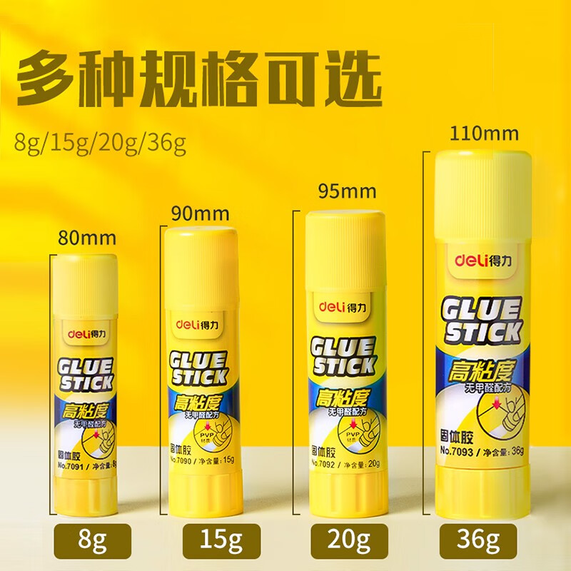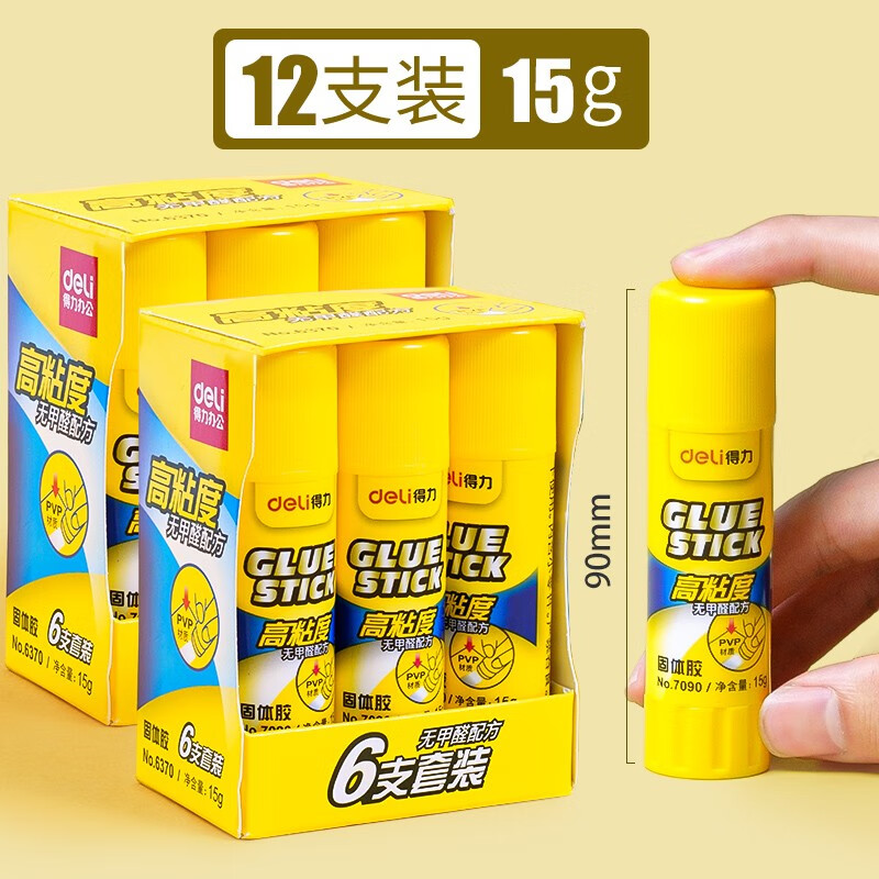 得力(deli) 大号固体胶胶棒粘性强儿童手工课胶水办公用品文具 15g/支 7090 12支/盒 自营