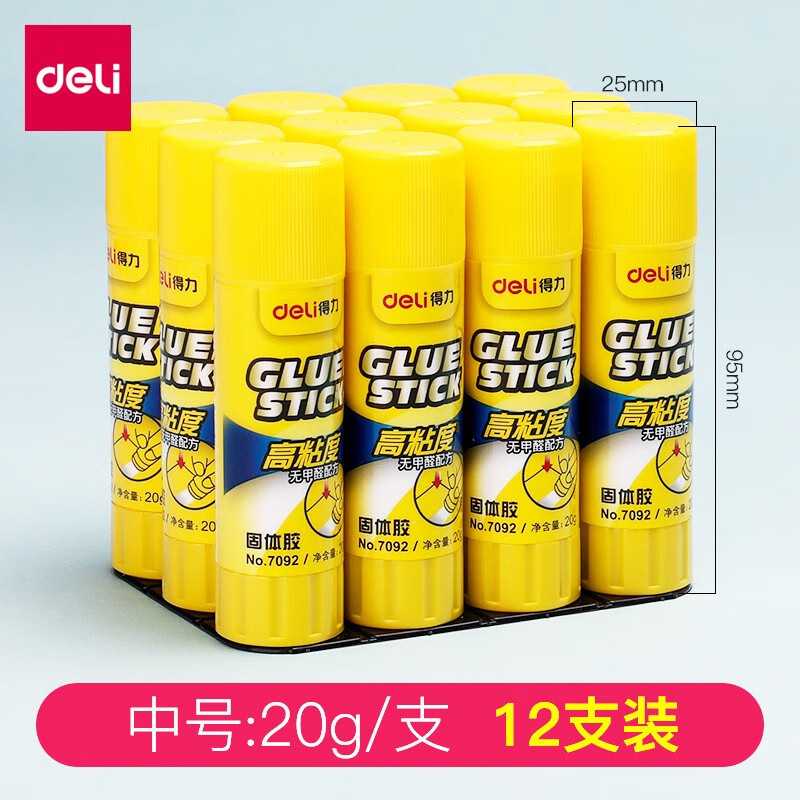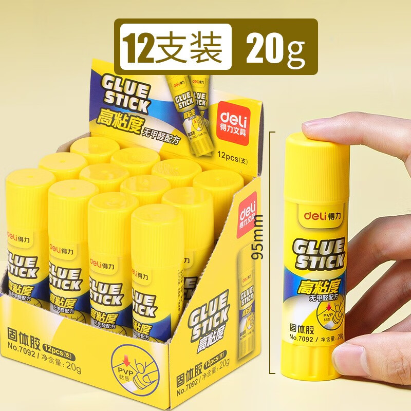 得力(deli) 大号固体胶胶棒粘性强儿童手工课胶水办公用品文具 20g/支 7092 12支 自营