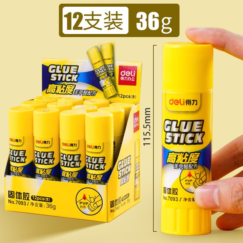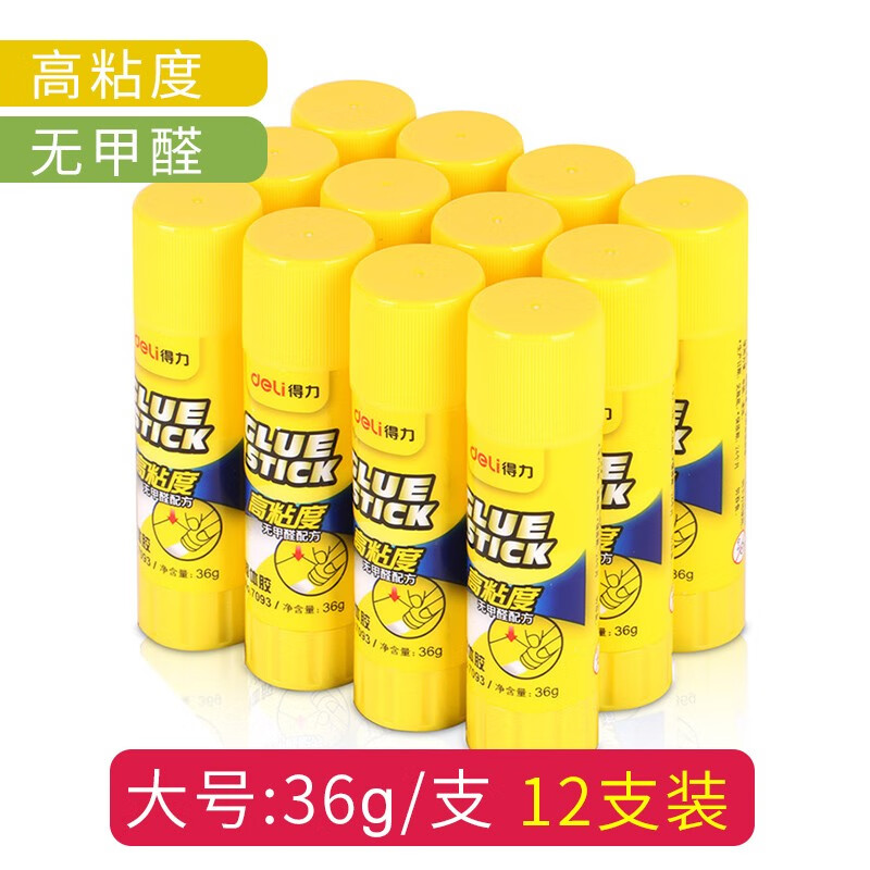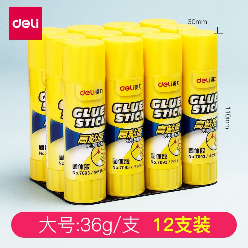 得力(deli) 大号固体胶胶棒粘性强儿童手工课胶水办公用品文具 36g/支 7093 12支 自营