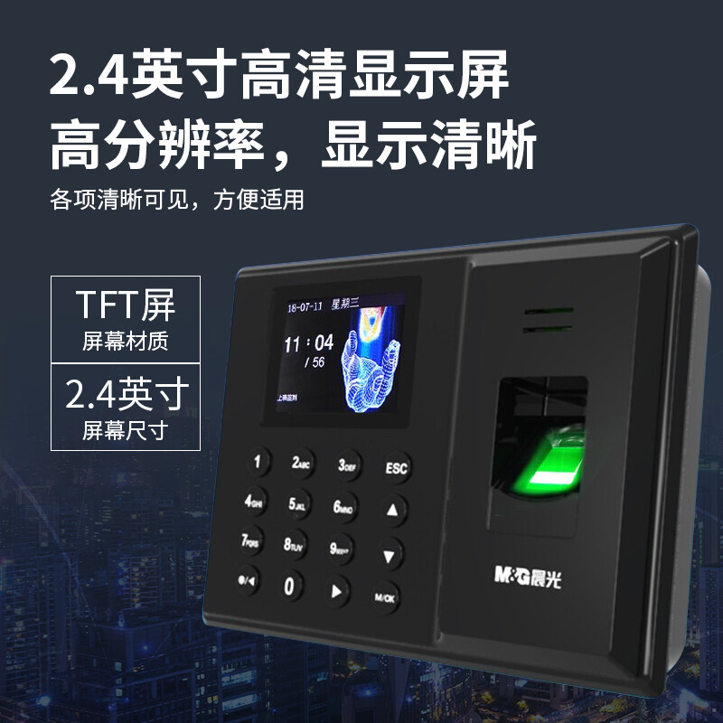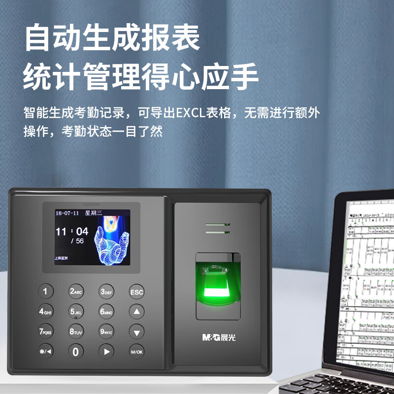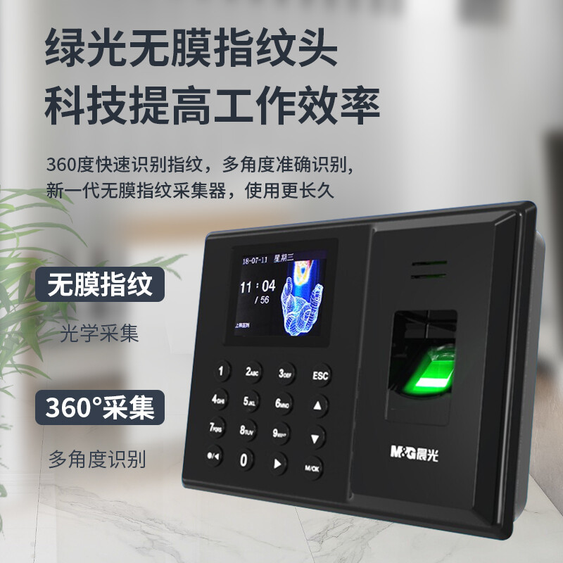 晨光(M&G) 快速识别智能指纹打卡考勤机 免软件安装 自动生成报表AEQ96750 自营