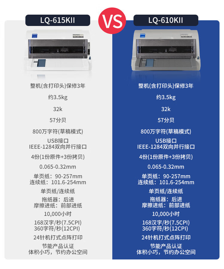 爱普生(EPSON) 发票打印机 1+3联82列针式打印机 LQ-615KII 中小企业 自营