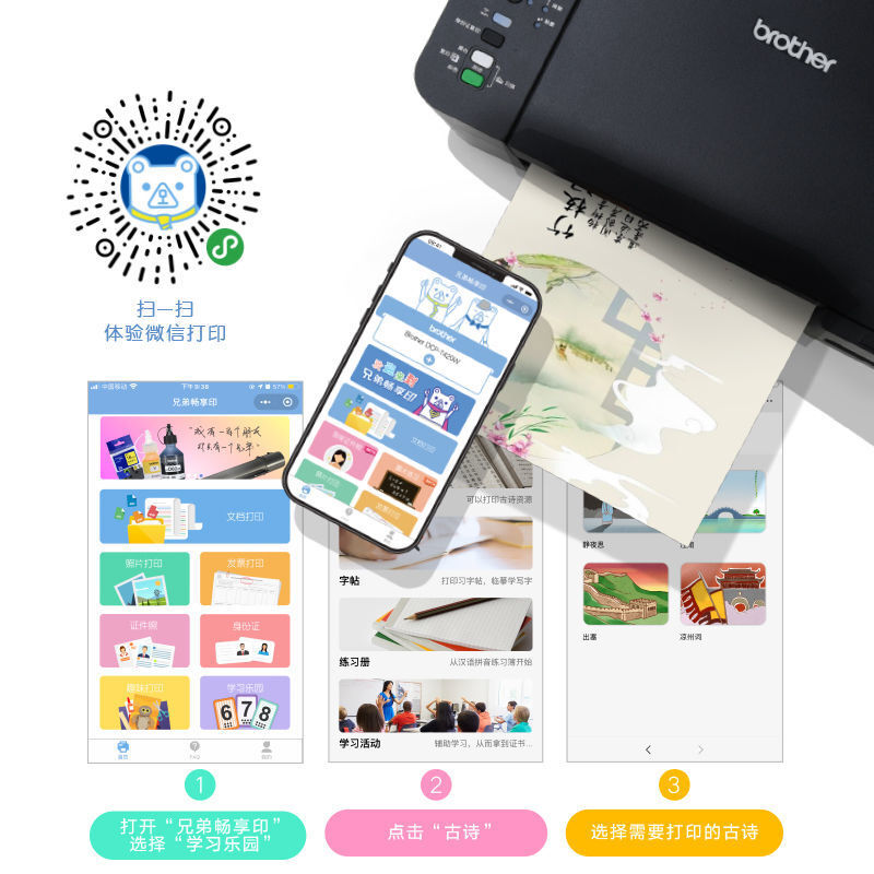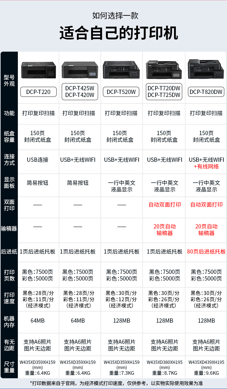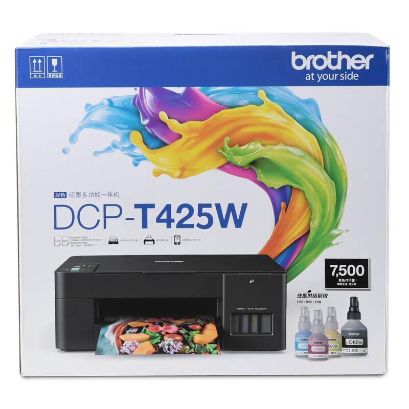 兄弟(brother)DCP-T425W彩色喷墨多功能打印机小型学生家用办公内置墨仓无线连接复印扫描 自营