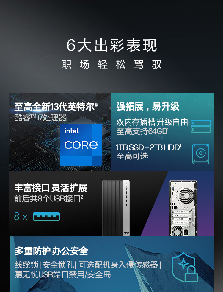 惠普(HP)战99 23款大机箱 高性能整机 商用办公 台式电脑主机 教育学习(13代i5-13500 16G 1TSSD 14核 )23.8英寸大屏显示器 自营