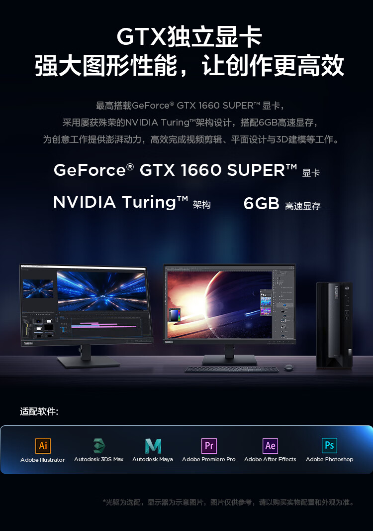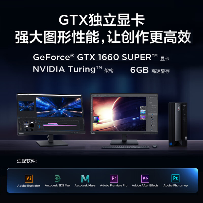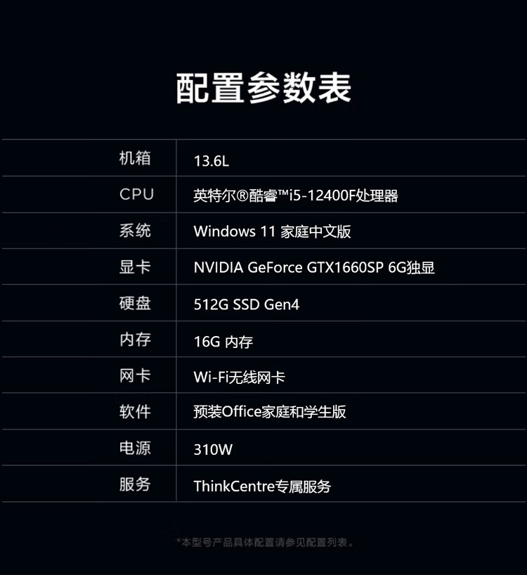 联想ThinkCentre neo P600 英特尔酷睿i5 商用设计师游戏台式电脑主机 (i5-12400F 16G 512G GTX1660SP 6G) 自营
