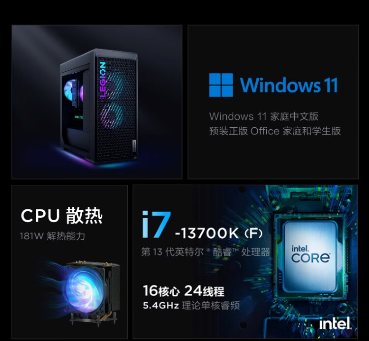 联想(Lenovo)拯救者刃7000K 2023游戏电脑主机(13代i7-13700KF RTX3060Ti 8GB显卡16G DDR5 512G SSD) 自营