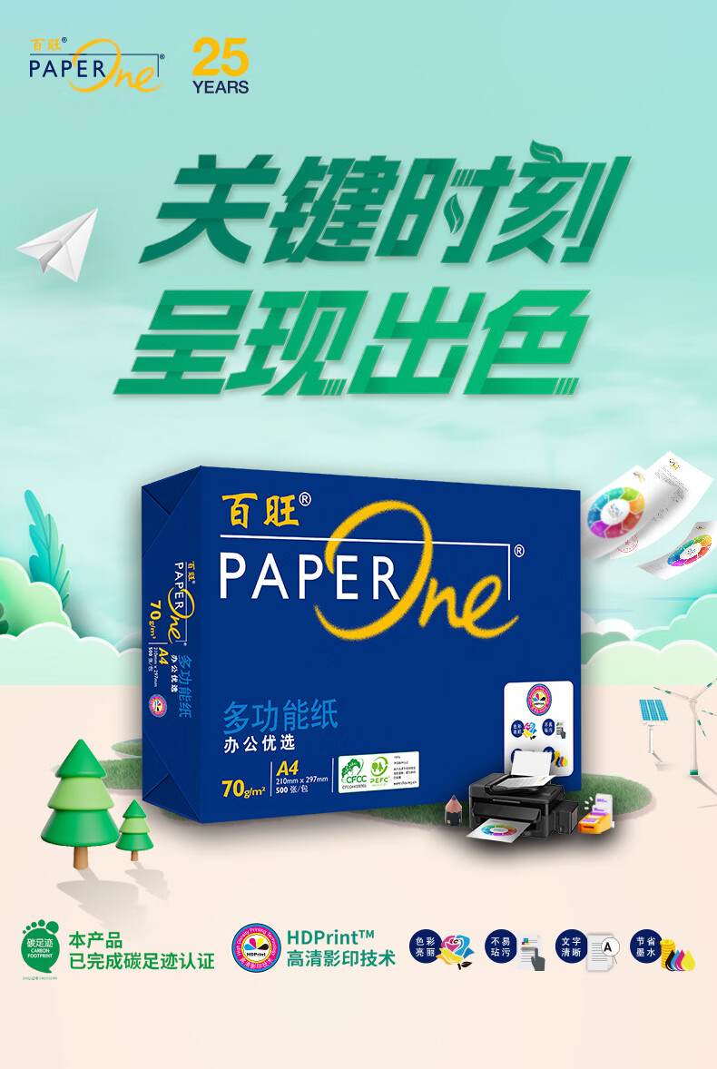 百旺亚太森博 蓝百旺A4打印纸 70g克500张*5包 纸张洁白复印纸 合同标书彩打纸 整箱2500张【轻奢款】 自营