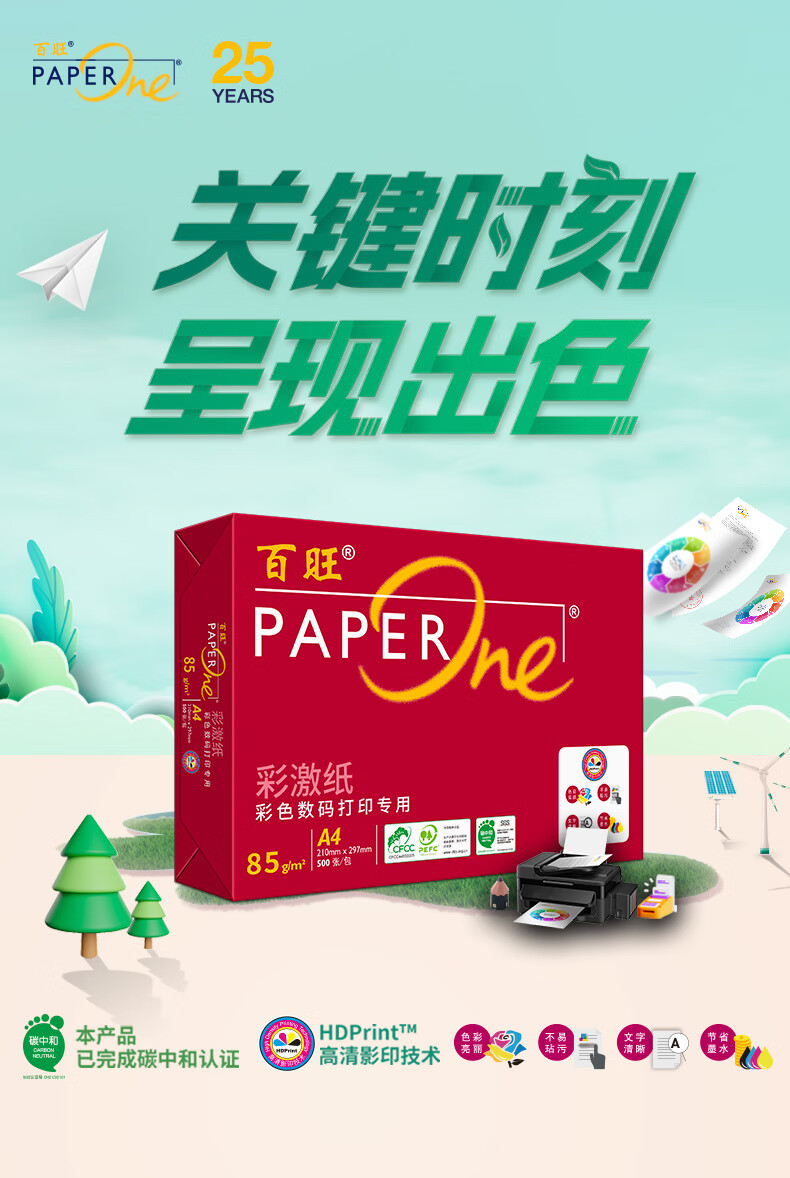 百旺亚太森博 红百旺A4打印纸 85g克500张*5包 纸张洁白复印纸 合同标书彩打纸 整箱2500张【尊享款】 自营