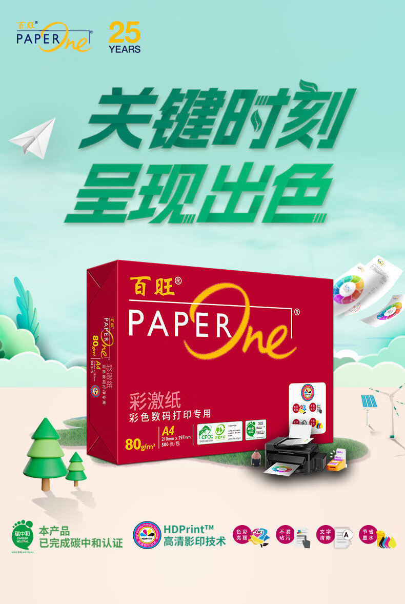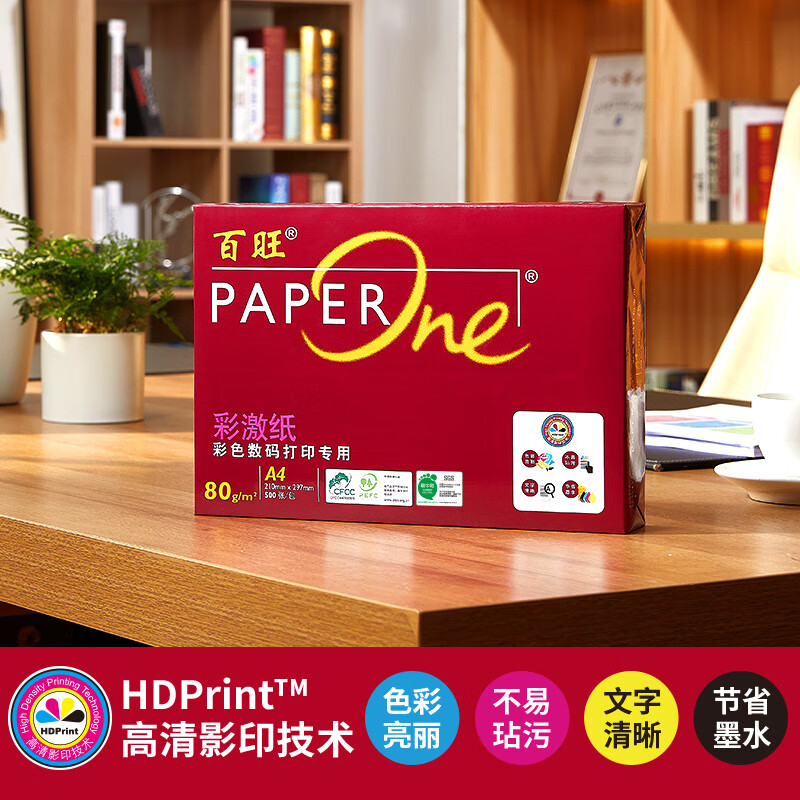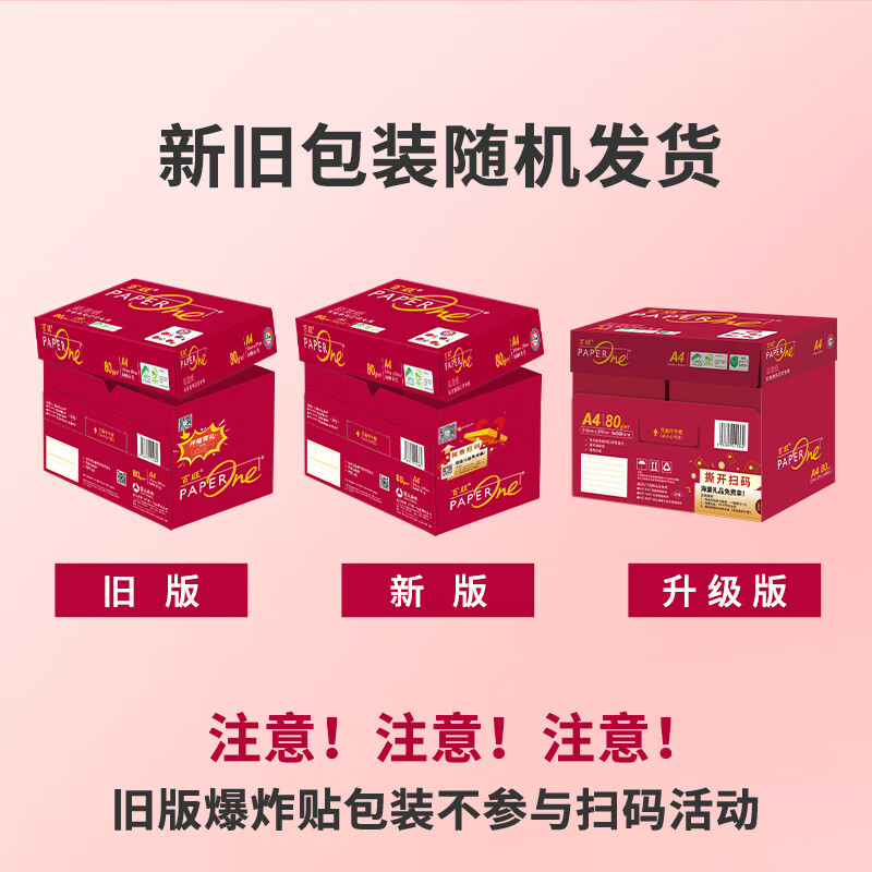 百旺亚太森博 红百旺A4打印纸 80g克500张*5包 纸张洁白复印纸 合同标书彩打纸 整箱2500张【尊享款】 自营