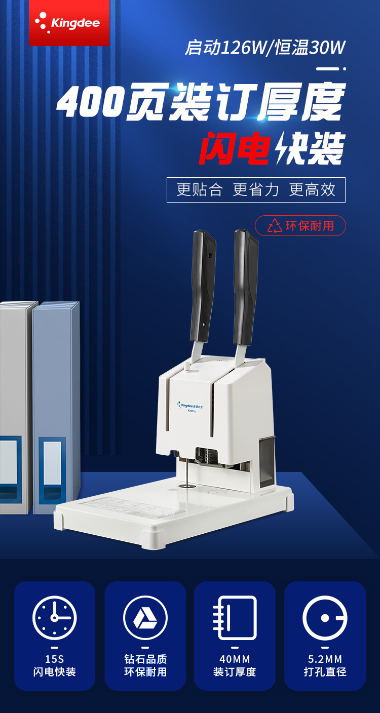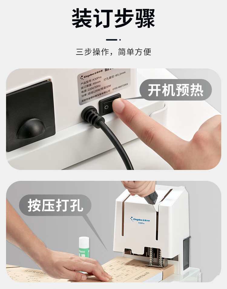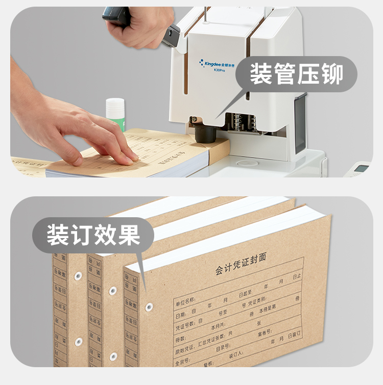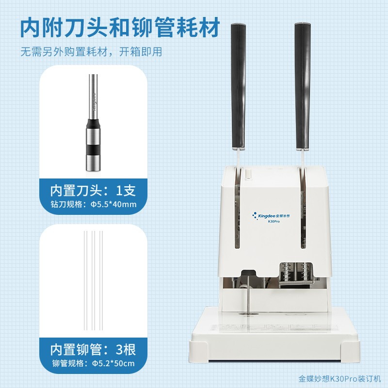 金蝶 kingdee 凭证装订机K30 Pro +铆管+钻刀 财务会计凭证热铆管装订打孔机 40mm厚度轻松省力 自营