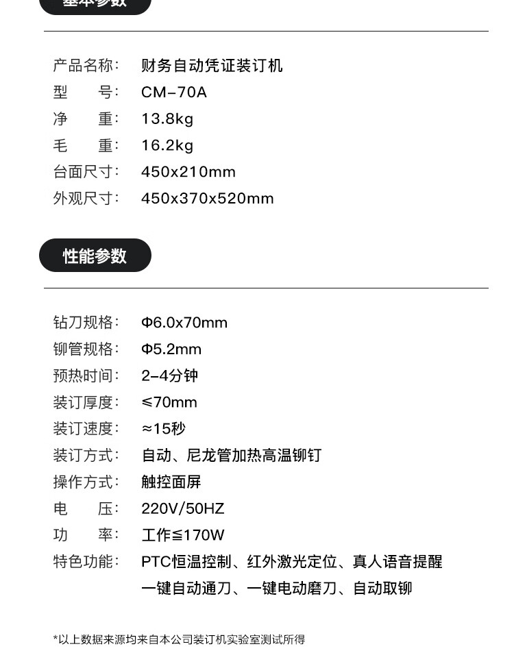 科密(comet) 700页自动财务凭证装订机 文件档案打孔机 CM-70A 自营