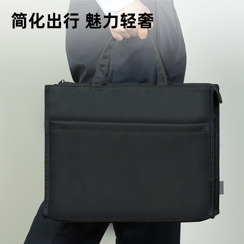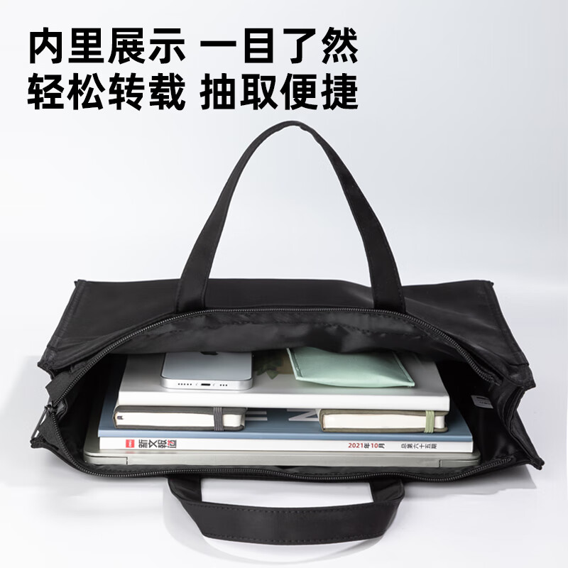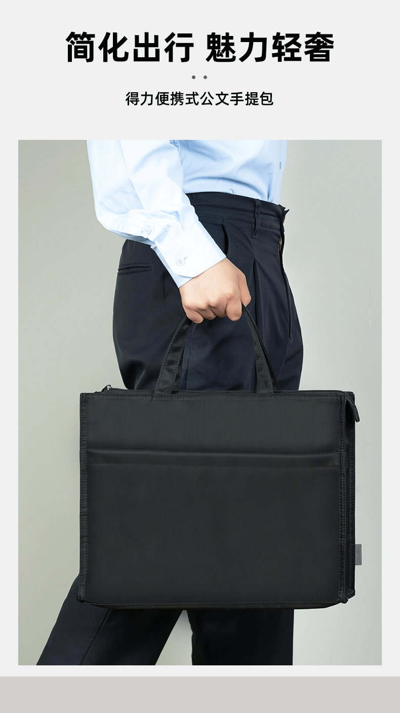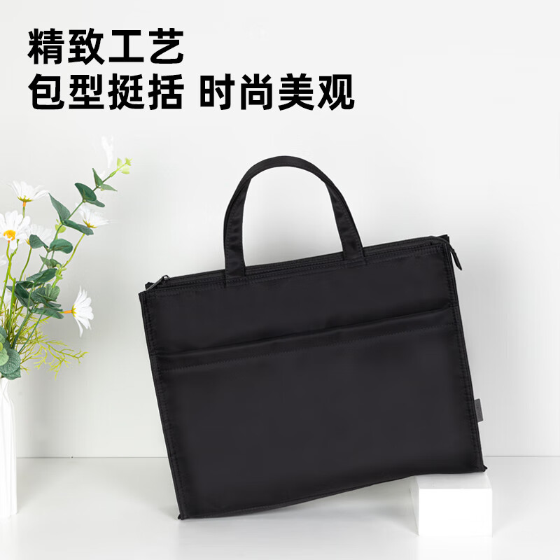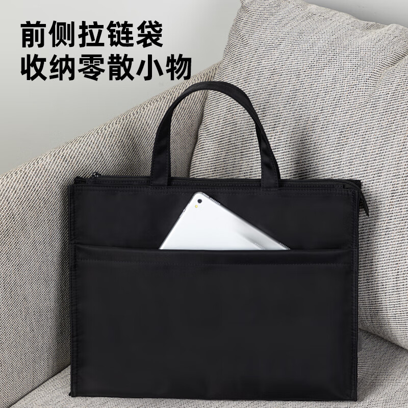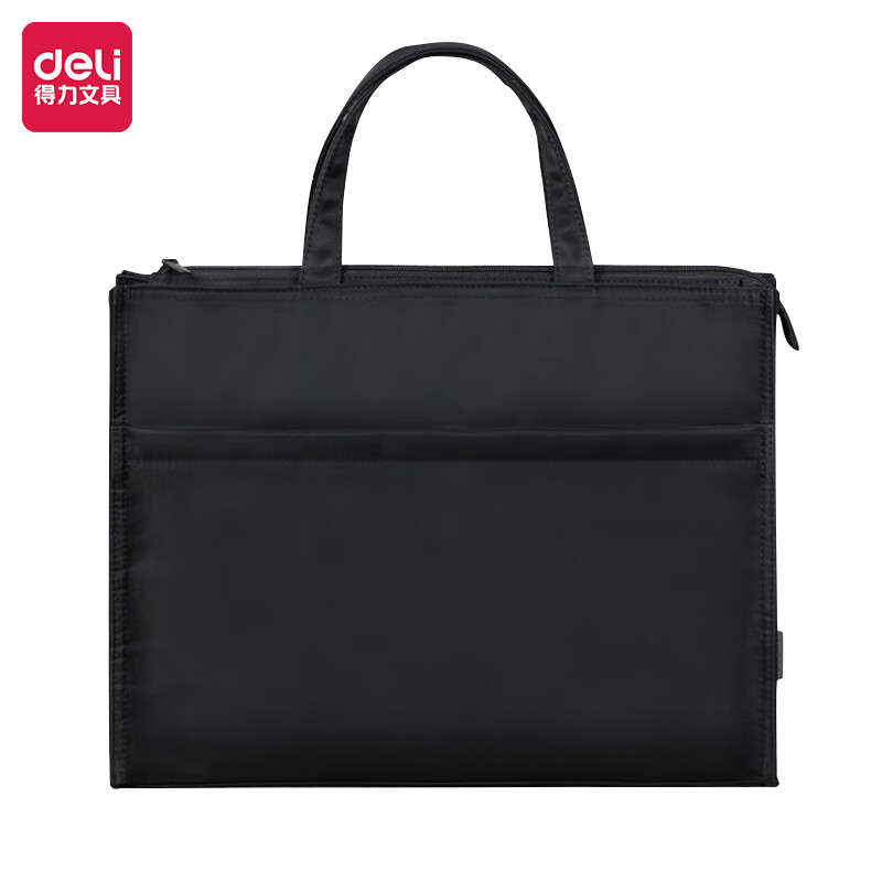 得力(deli)办公手提袋会议包事务包/文件包 加厚大容量商务拉链袋电脑公文包 缎面材质 防水耐磨 黑色63762 自营