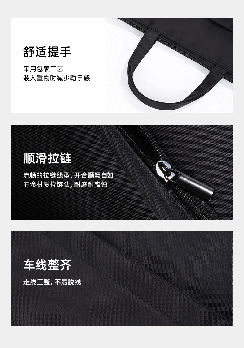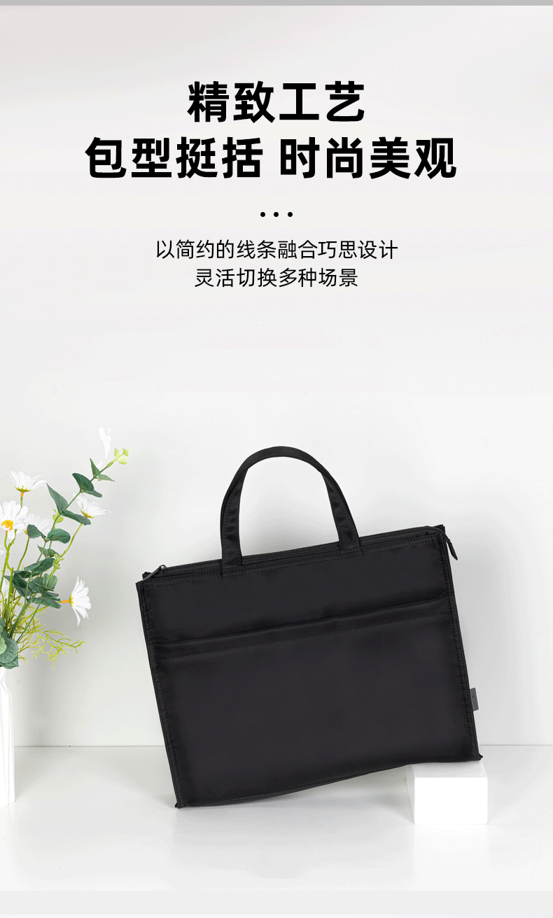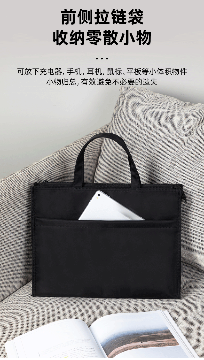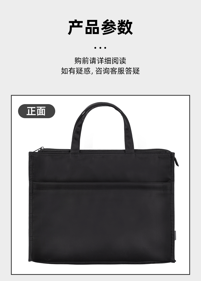 得力(deli)办公手提袋会议包事务包/文件包 加厚大容量商务拉链袋电脑公文包 缎面材质 防水耐磨 黑色63762 自营
