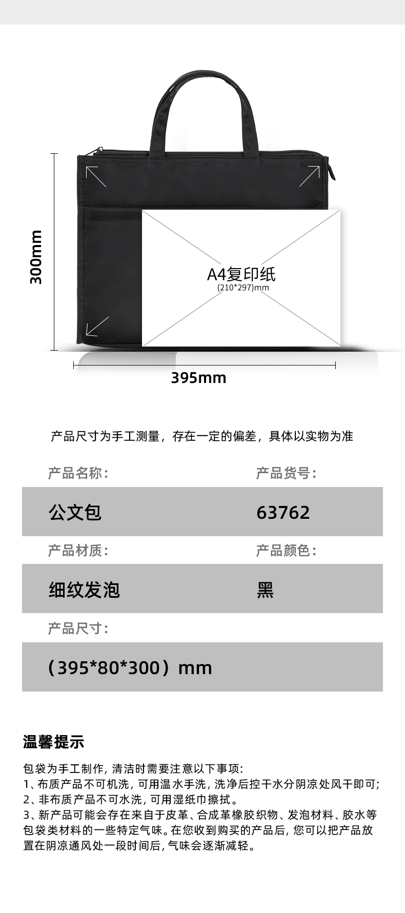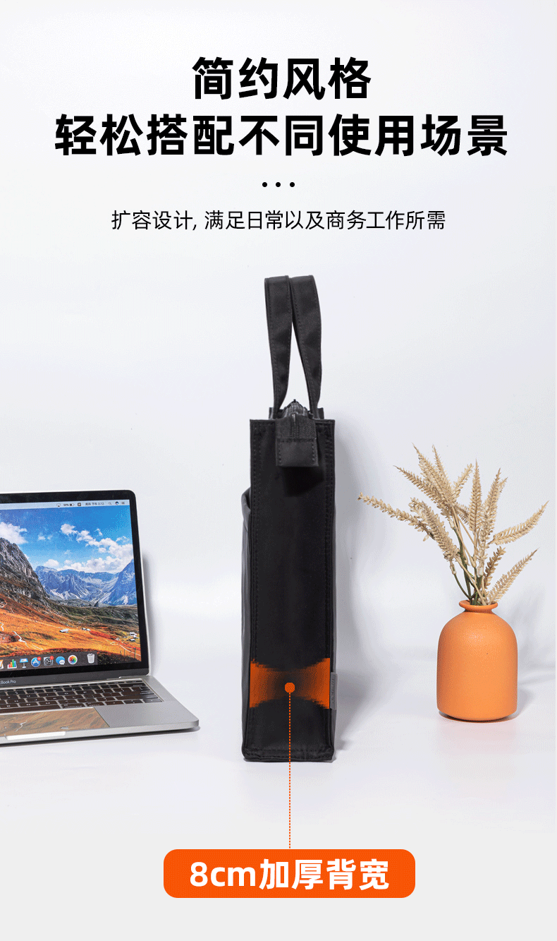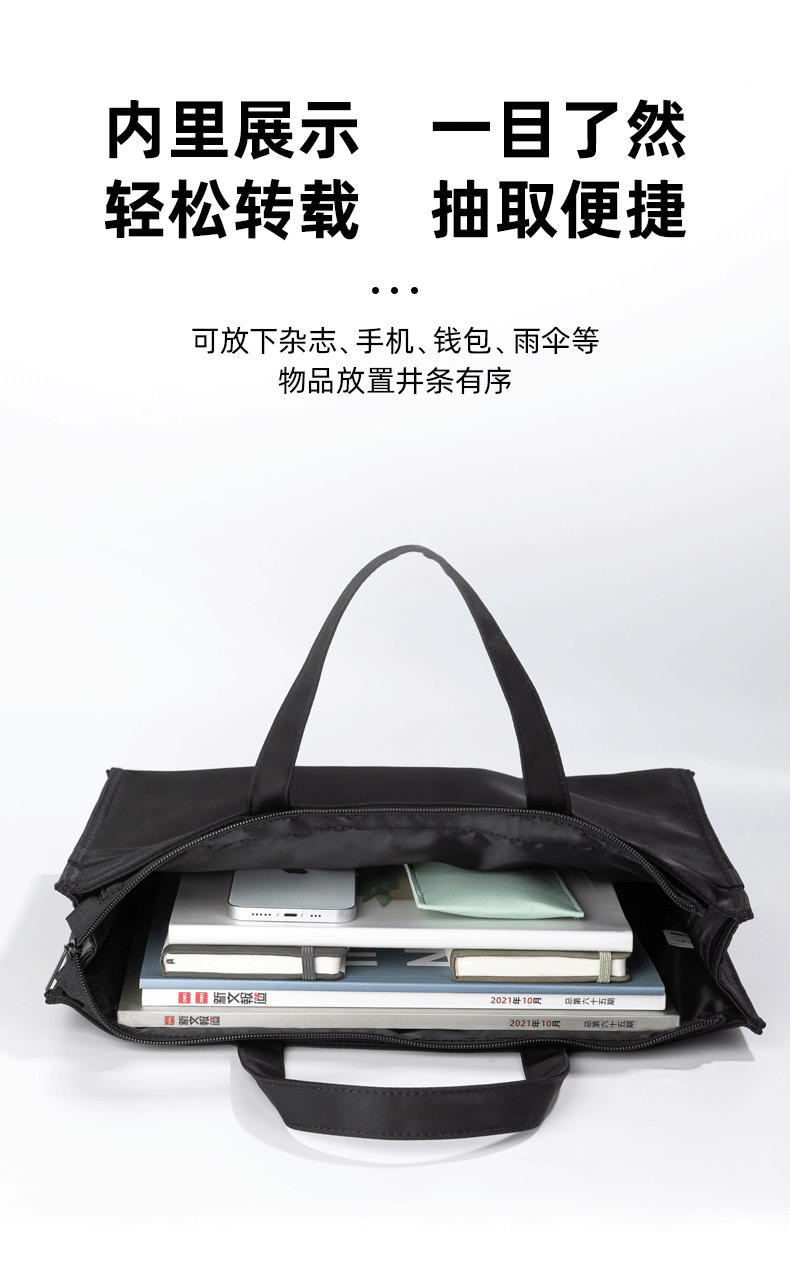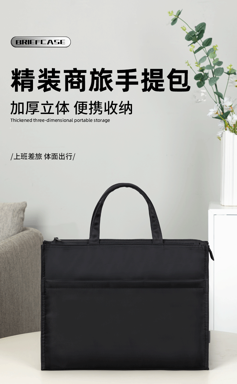 得力(deli)办公手提袋会议包事务包/文件包 加厚大容量商务拉链袋电脑公文包 缎面材质 防水耐磨 黑色63762 自营