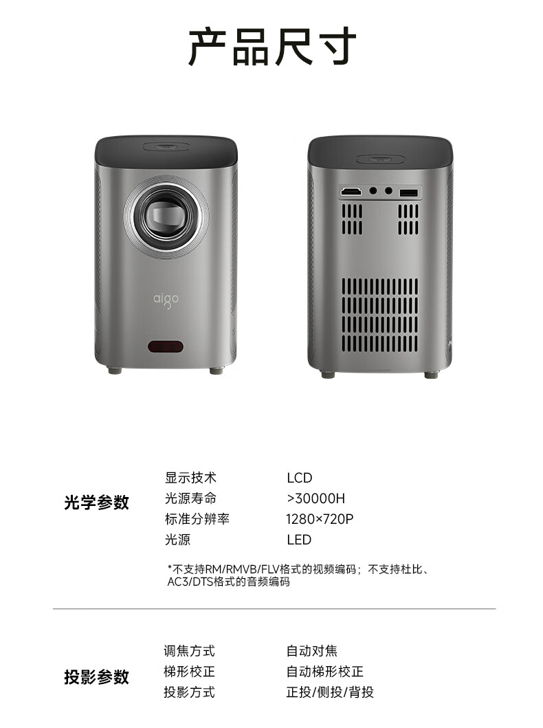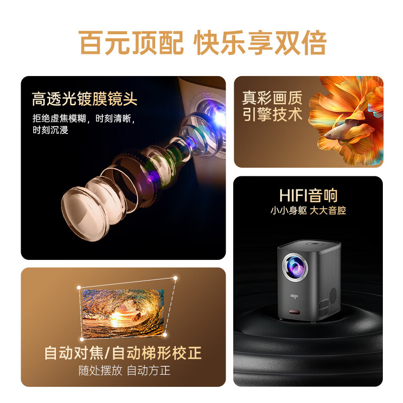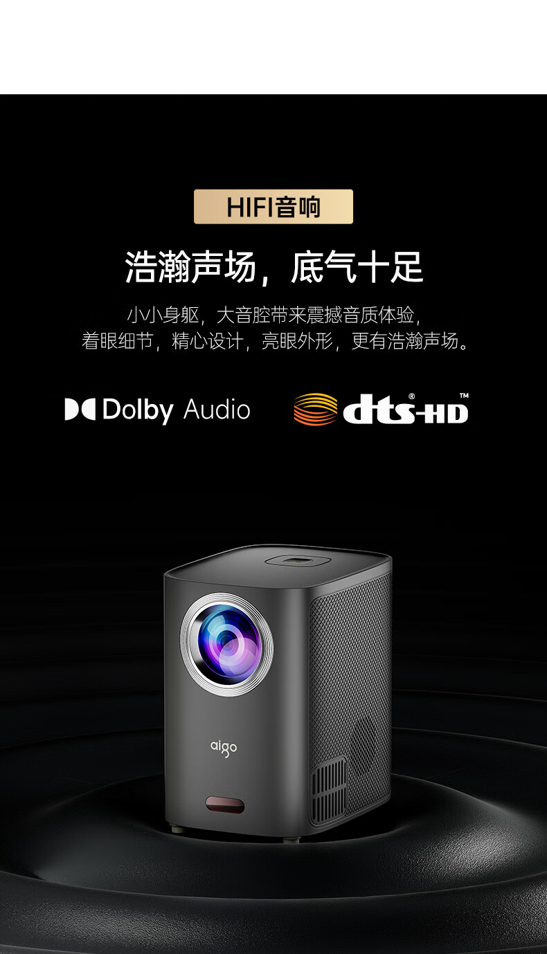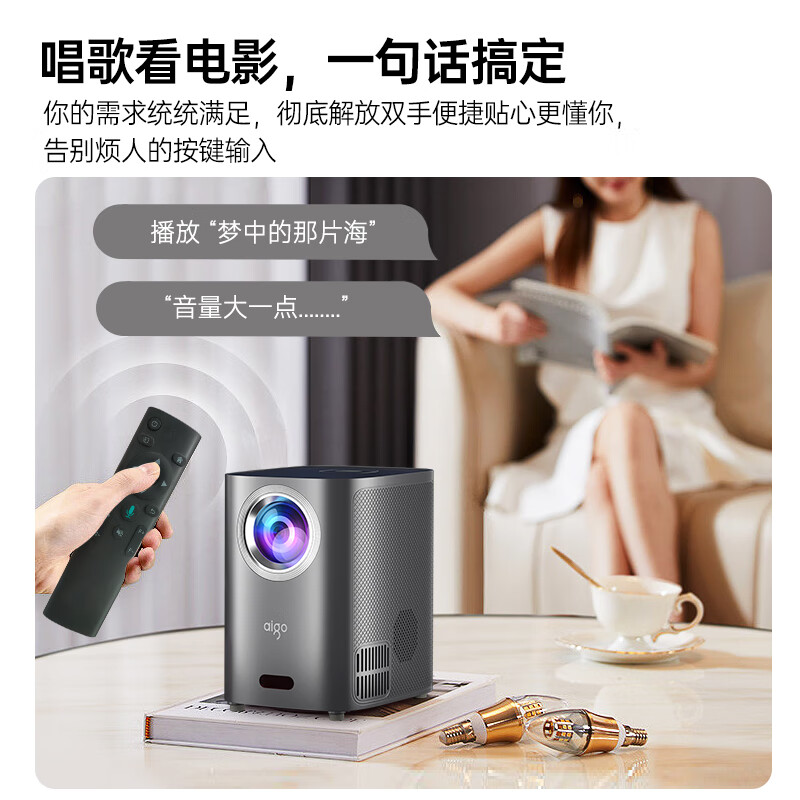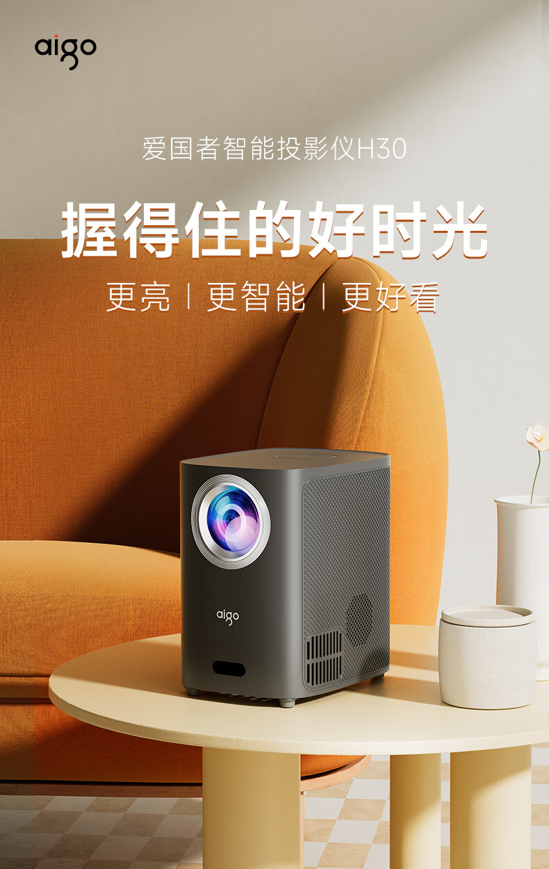 爱国者(aigo)H30 投影仪家用 投影机 卧室超高清便携投影(AI智能语音 自动对焦 蓝牙音响 海思旗舰芯片) 自营