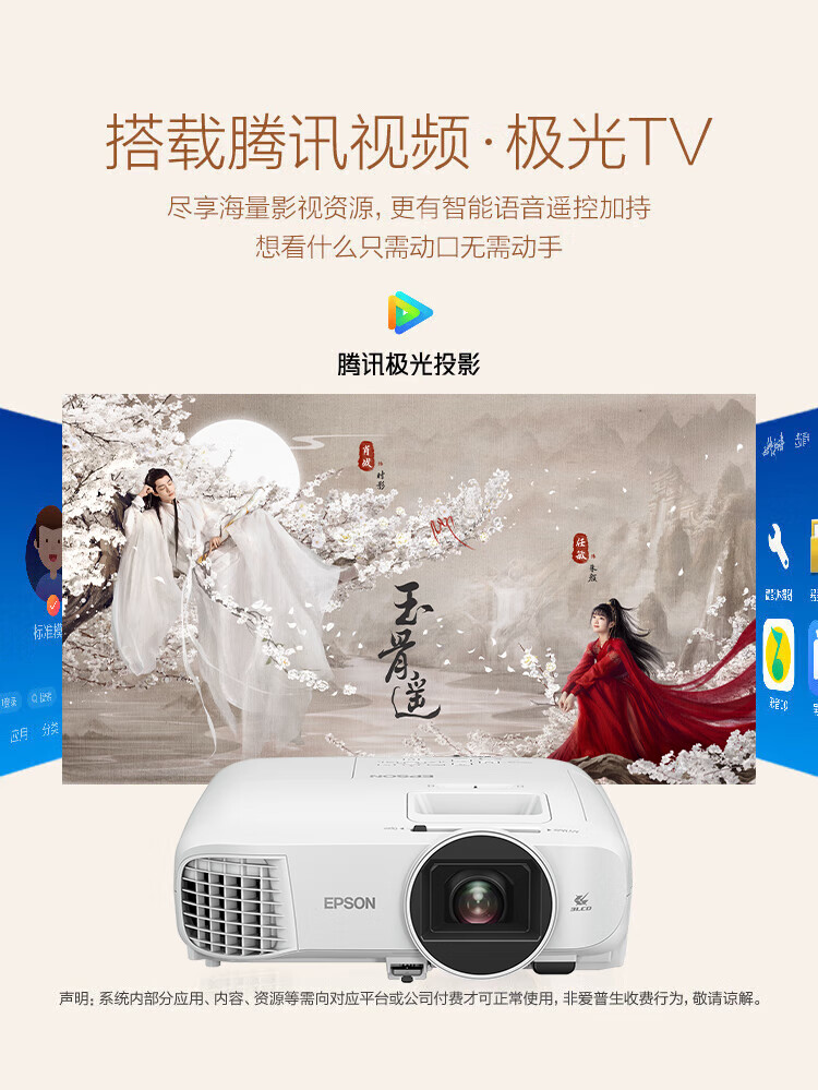 爱普生(EPSON)CH-TW5700TX投影仪 3LCD智能家庭影院投影机(1080P 2700流明 智能系统) 自营