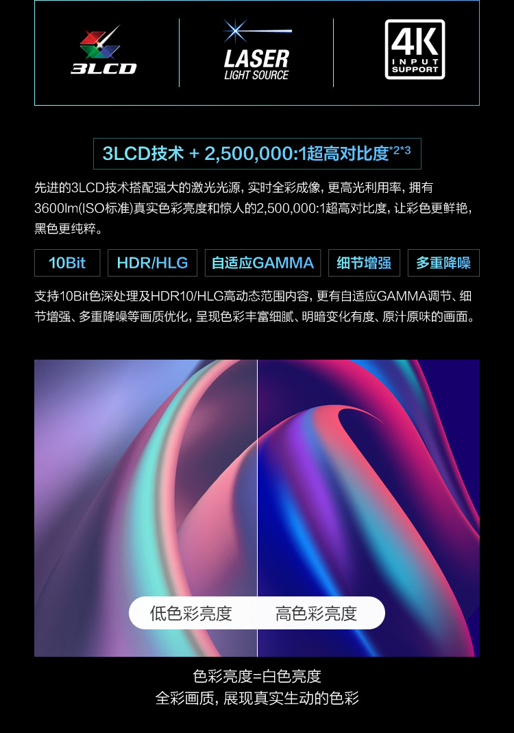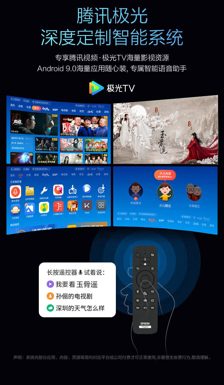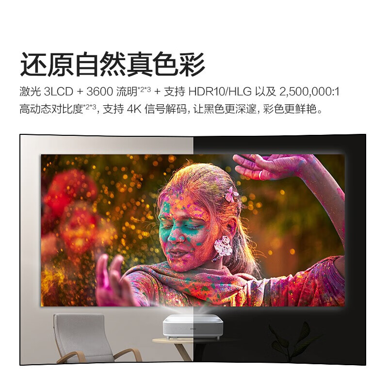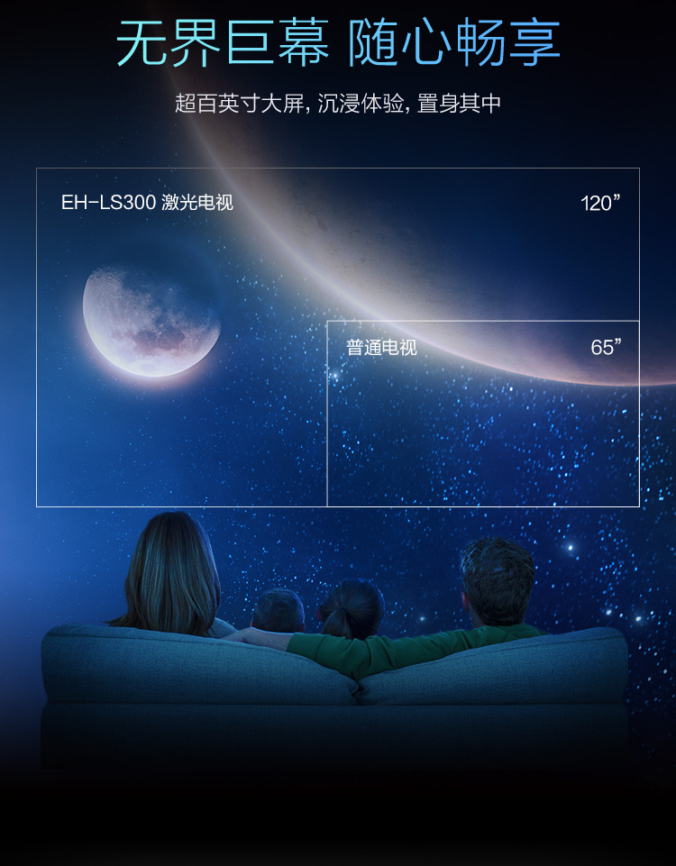 爱普生(EPSON)EH-LS300W 激光电视 投影仪家用 视听娱乐新旗舰 3600 ISO lm 自营