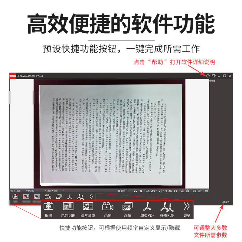 联想(Lenovo)扫描仪 1800+500万像素高拍仪双摄像头 A3硬底发票办公文件高速扫描仪自动连续扫描 PT5-D15S 自营