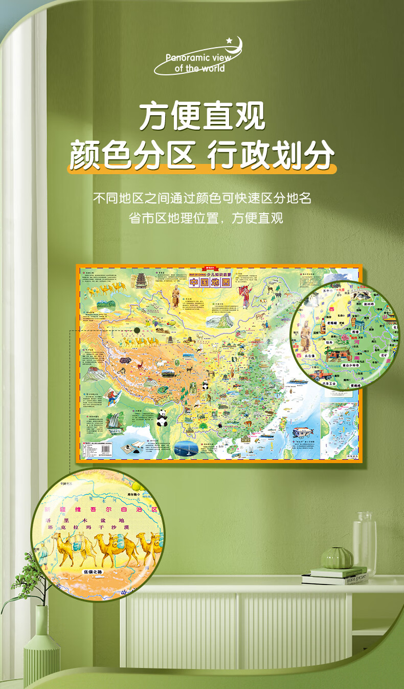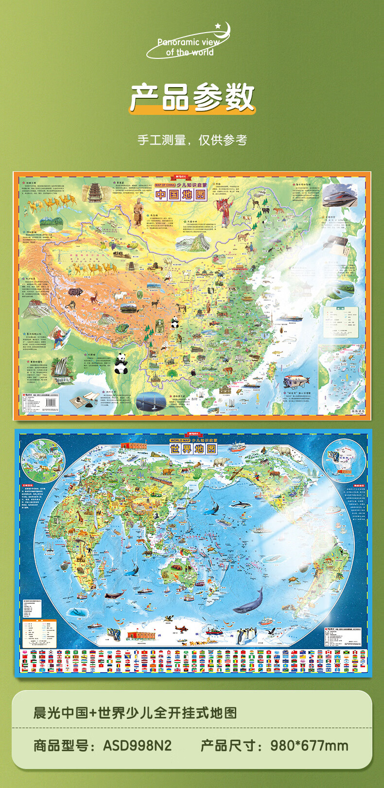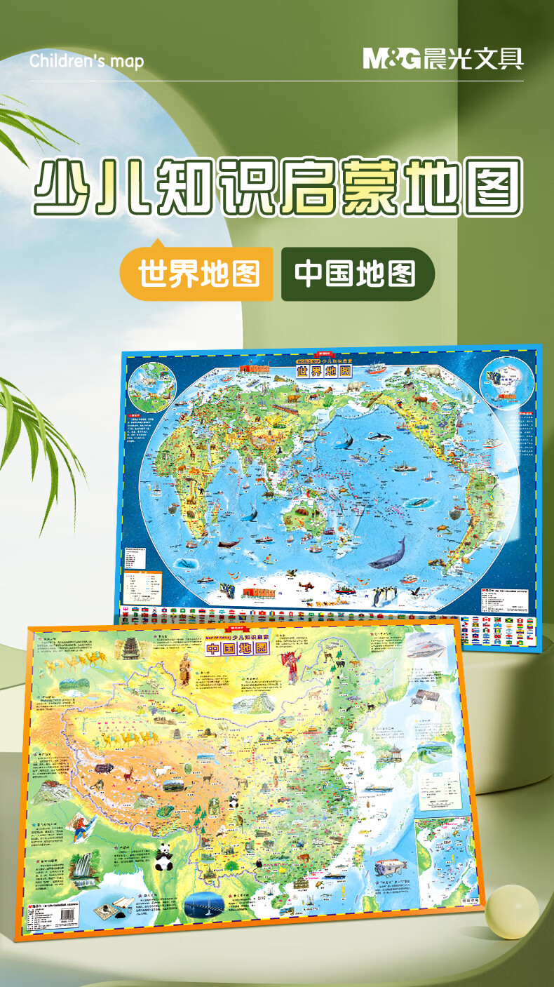 晨光(M&G)文具 中国/世界地图0.98*0.67米 卡通地理政区 认知板 全开挂式 儿童学生用品 ASD998N2 自营
