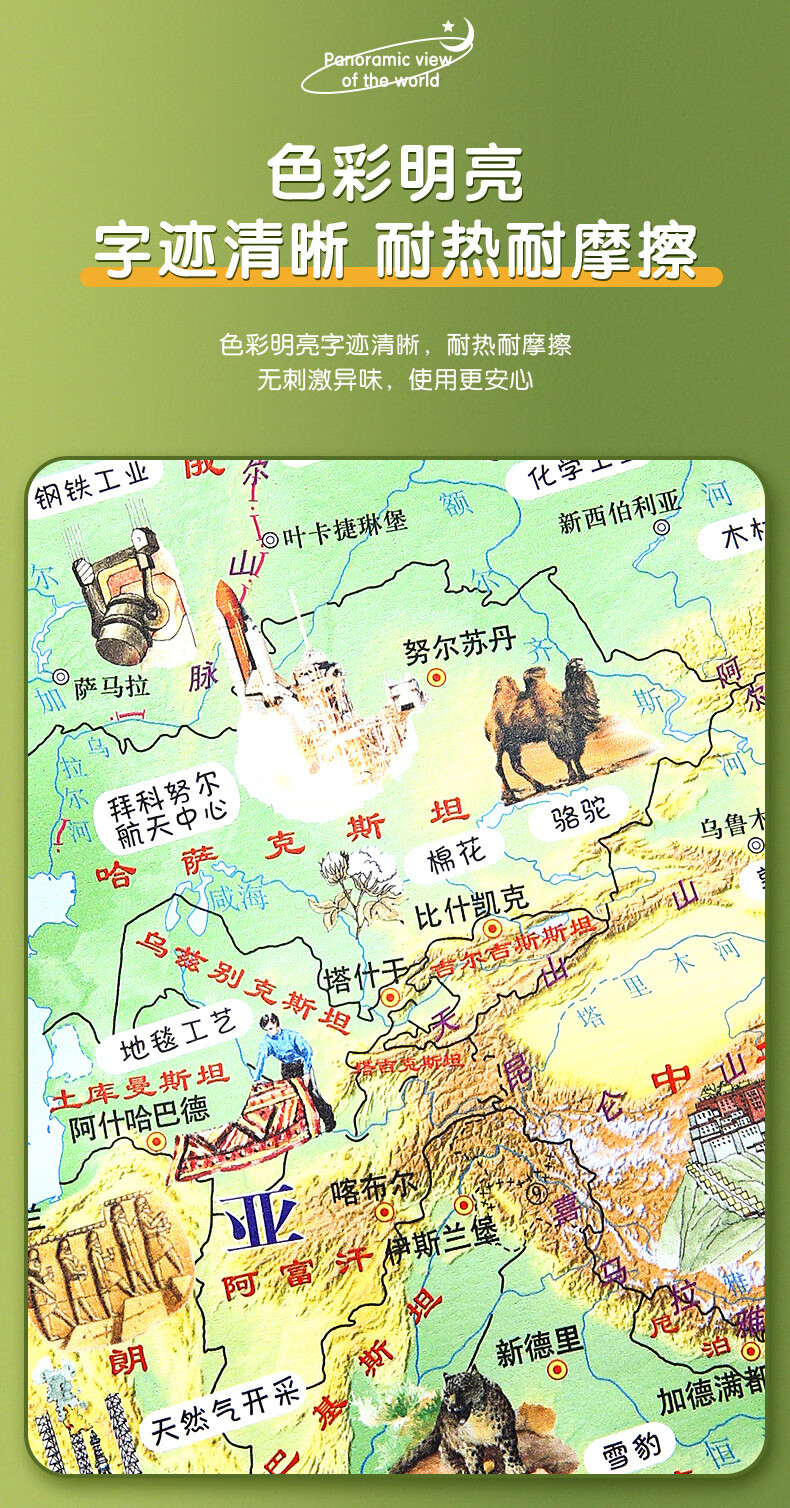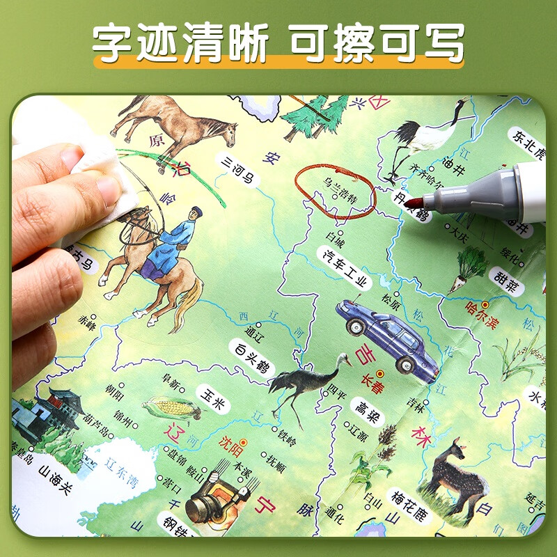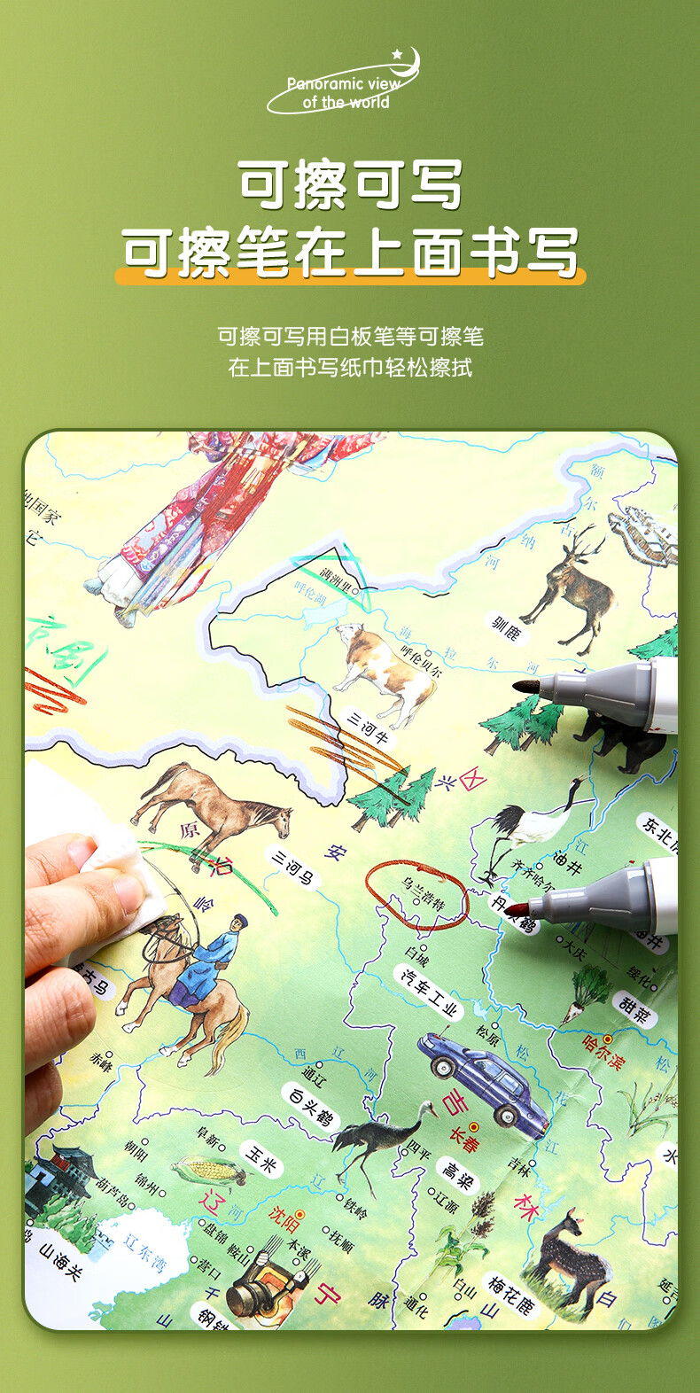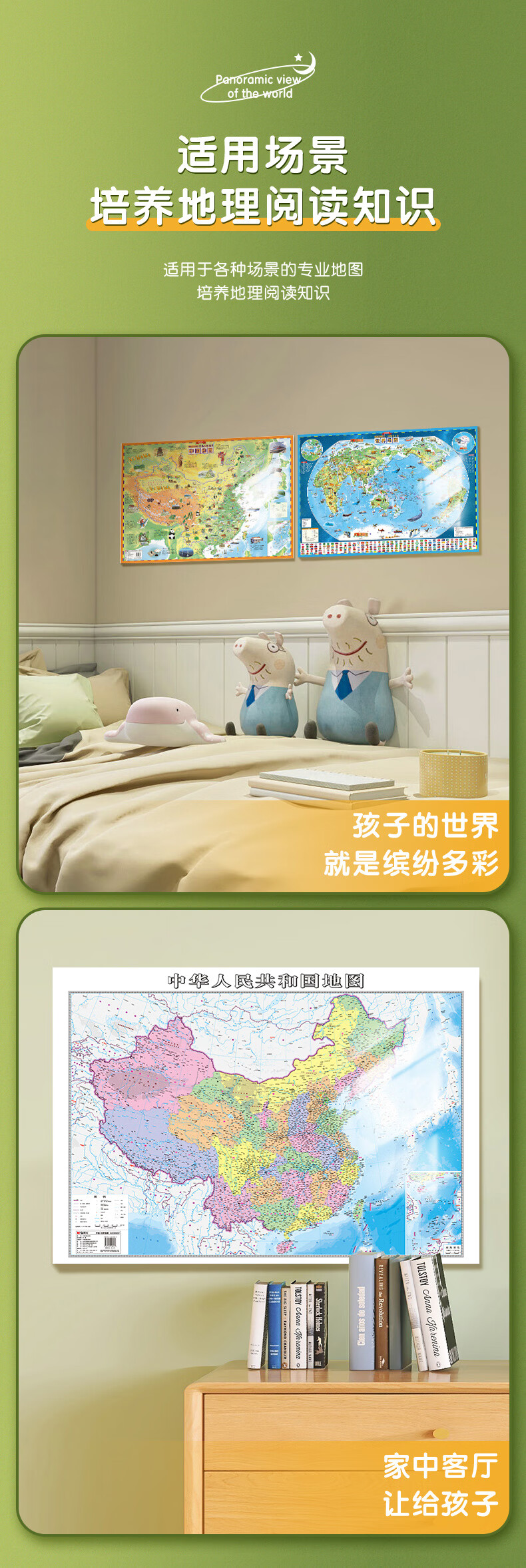 晨光(M&G)文具 中国/世界地图0.98*0.67米 卡通地理政区 认知板 全开挂式 儿童学生用品 ASD998N2 自营