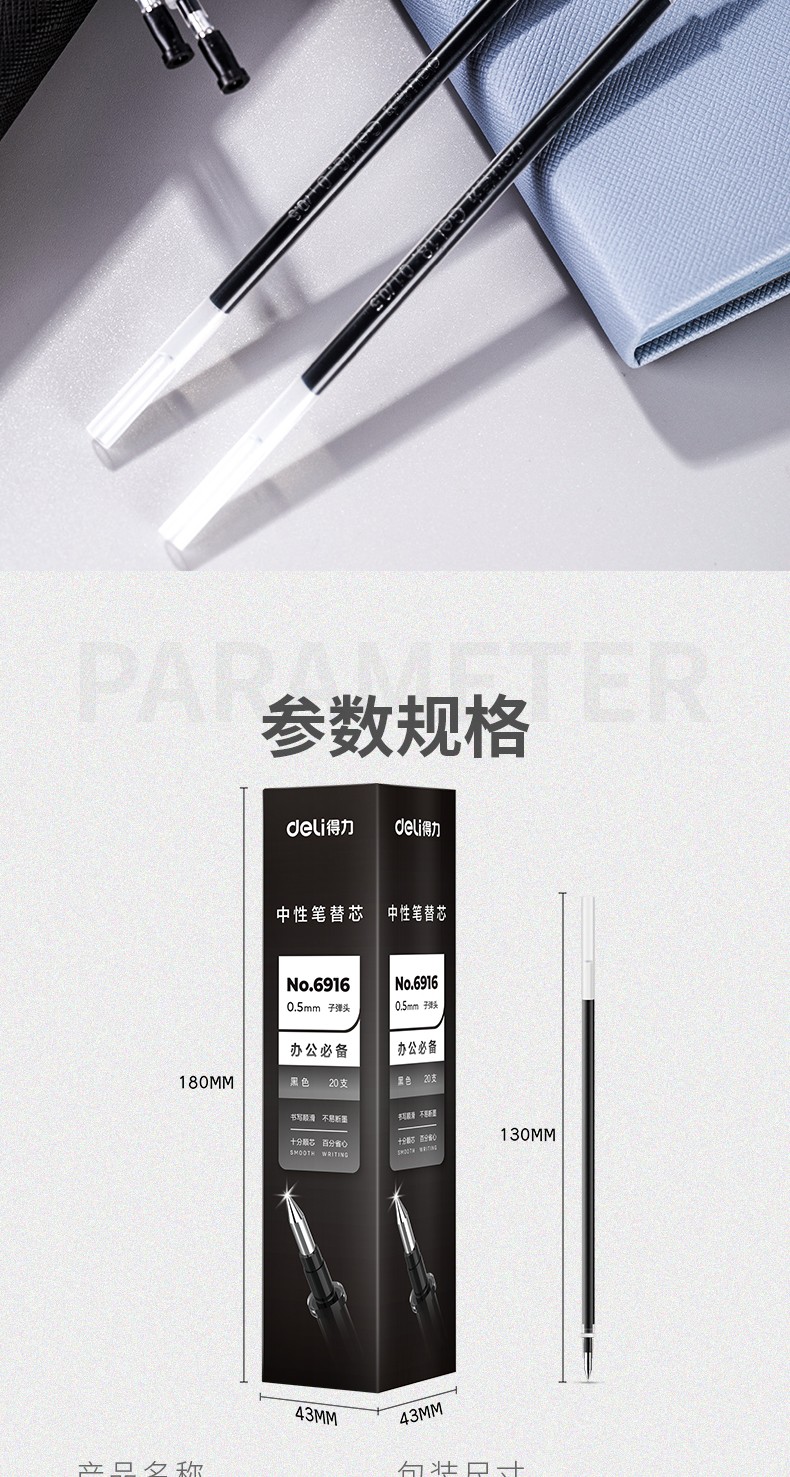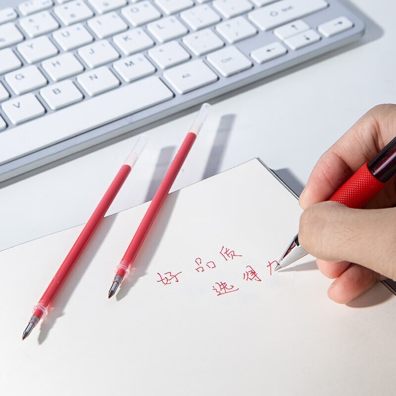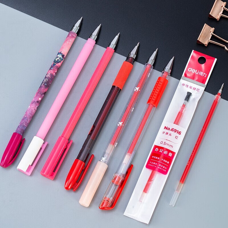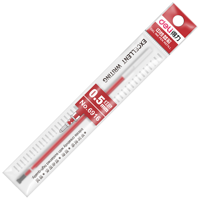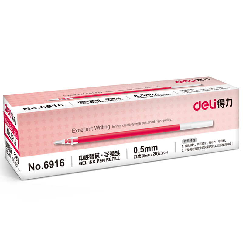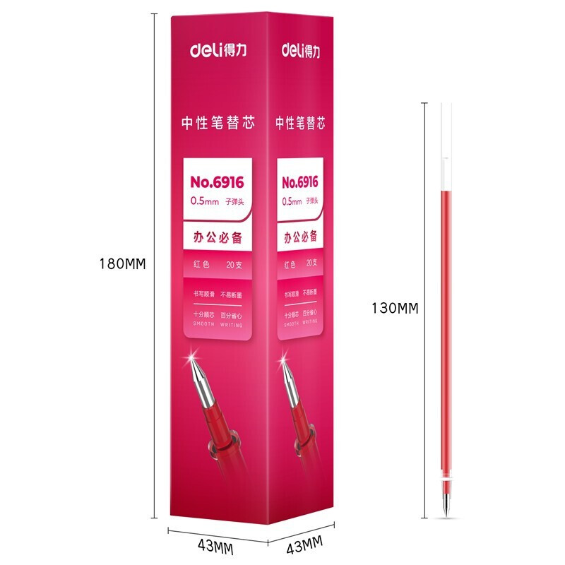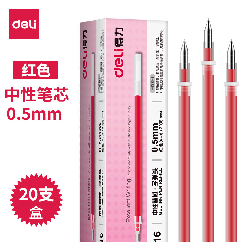 得力(deli) 笔芯 标准子弹头笔芯 水笔替芯 水笔芯 签字笔 0.5mm子弹头红色-20支装 6916 自营