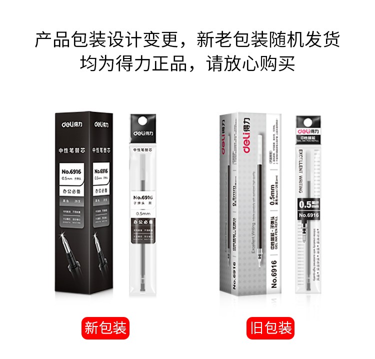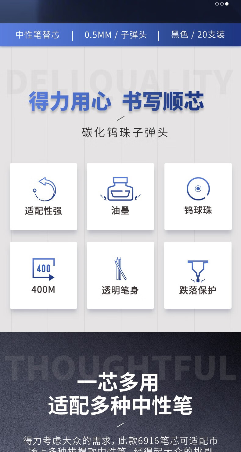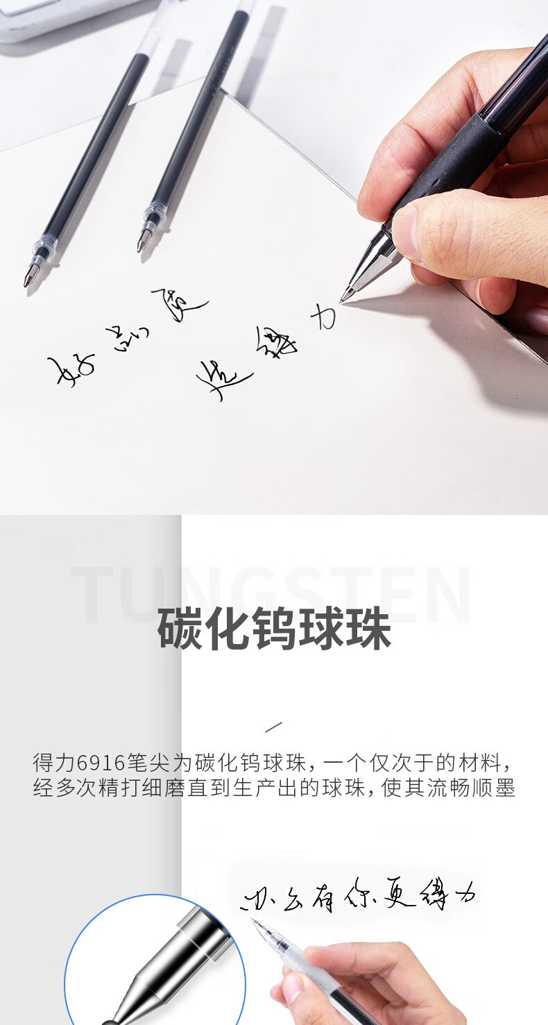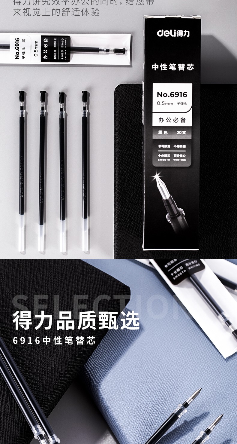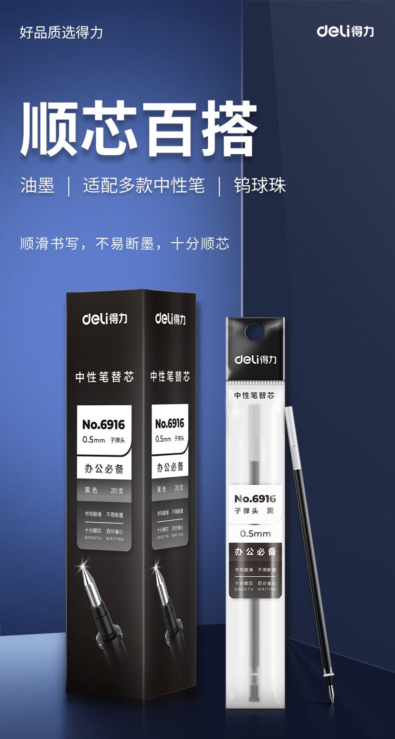 得力(deli) 笔芯 标准子弹头笔芯 水笔替芯 水笔芯 签字笔 0.5mm子弹头红色-20支装 6916 自营