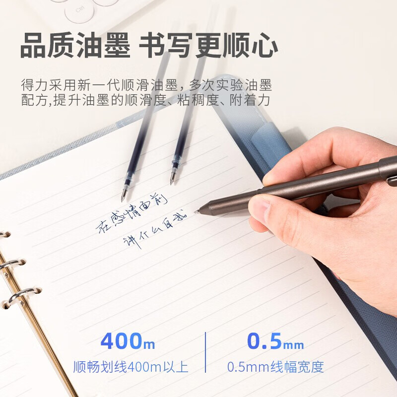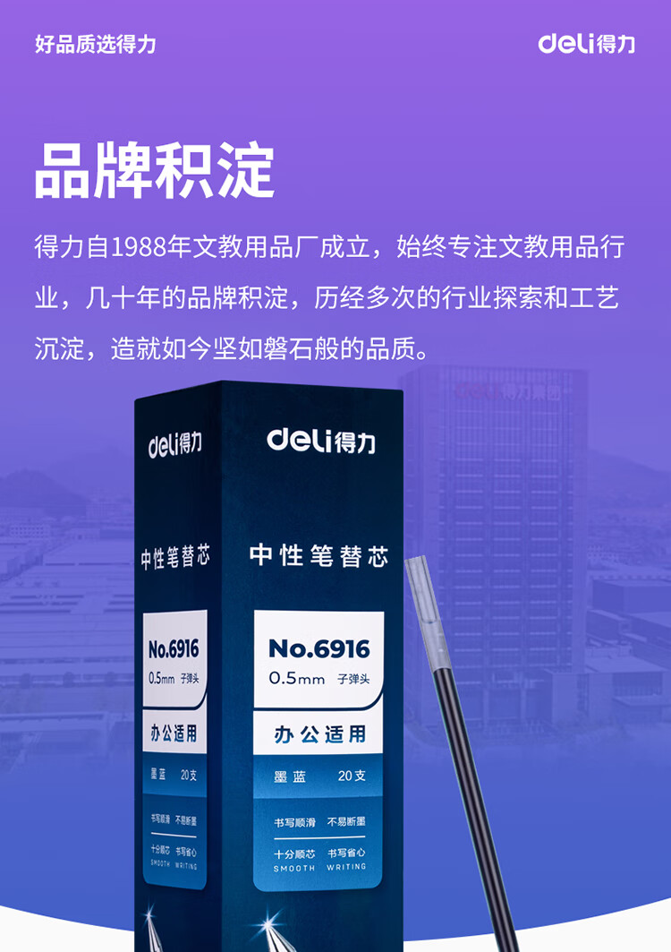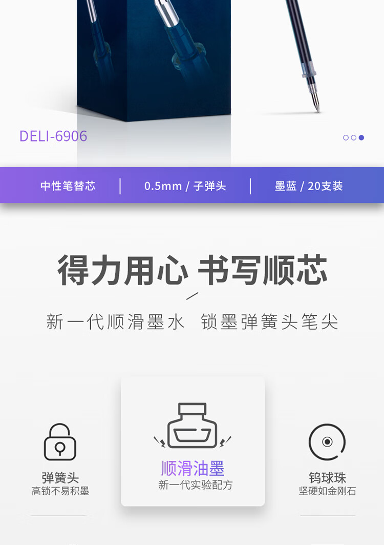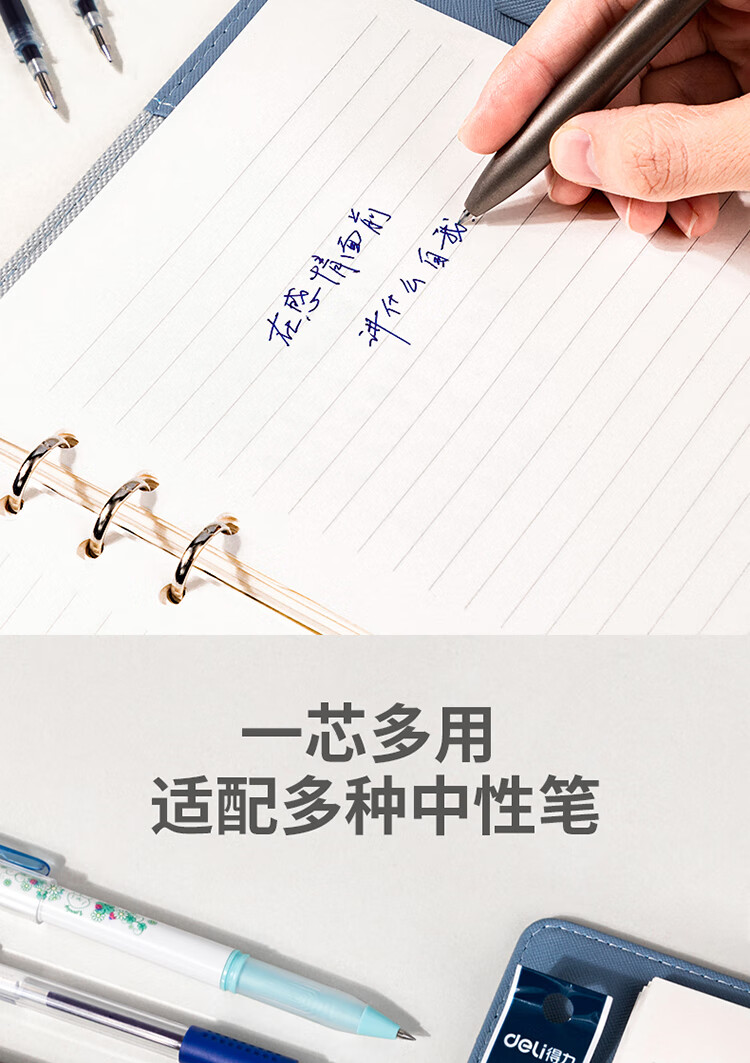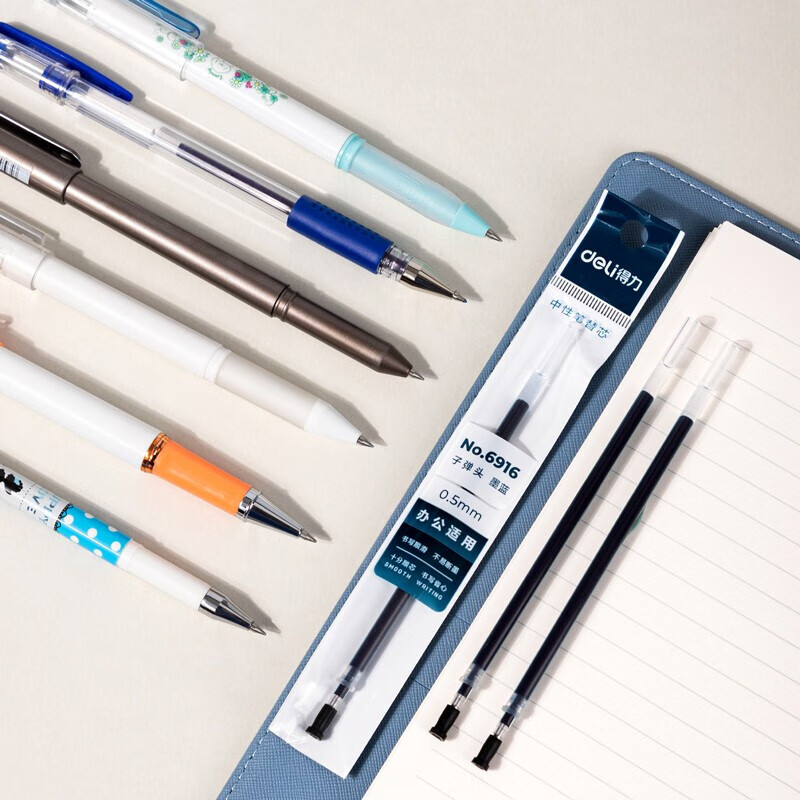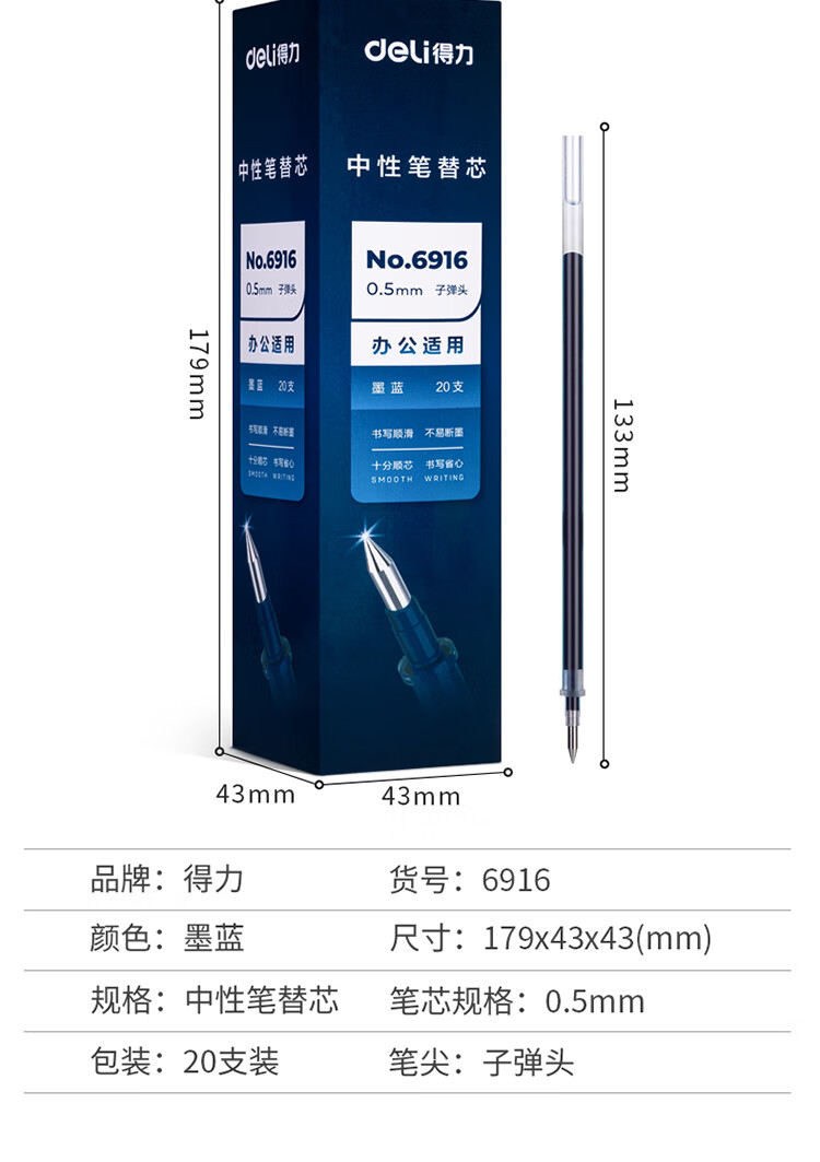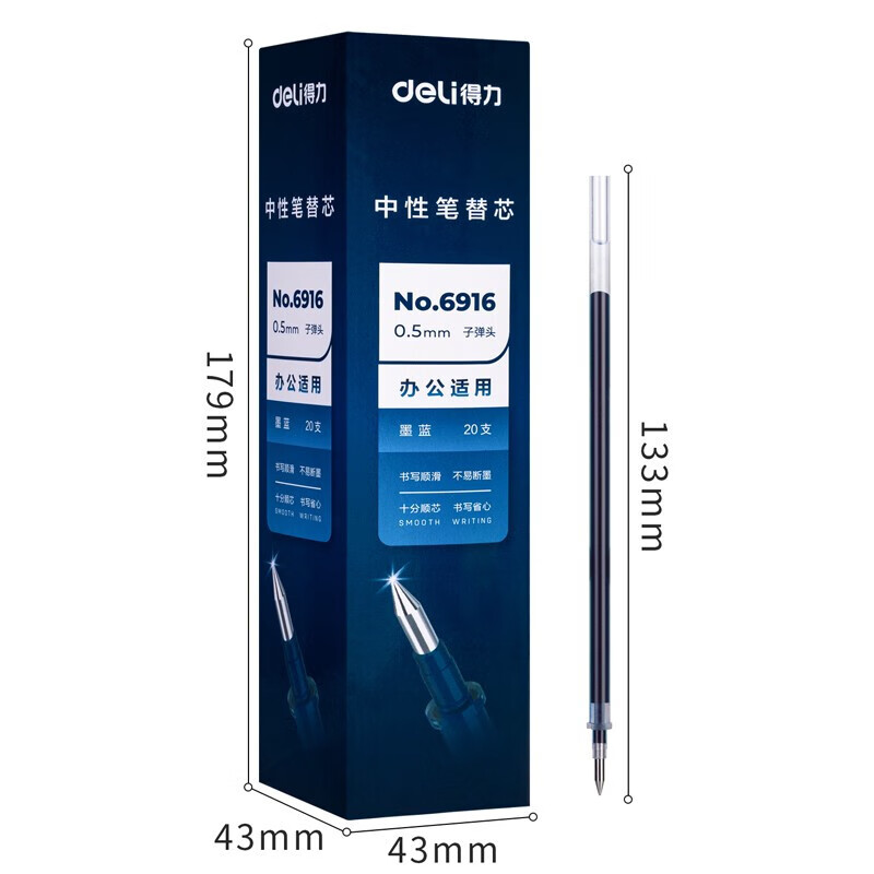 得力(deli)文具子弹头拔帽中性笔替芯 办公签字笔水笔替芯 墨蓝 20支/盒6916 自营