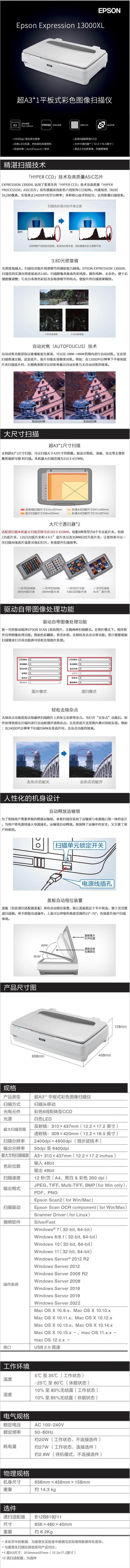 爱普生(EPSON)13000XL 高清专业照片影像A3平板式扫描仪 【标配】 自营