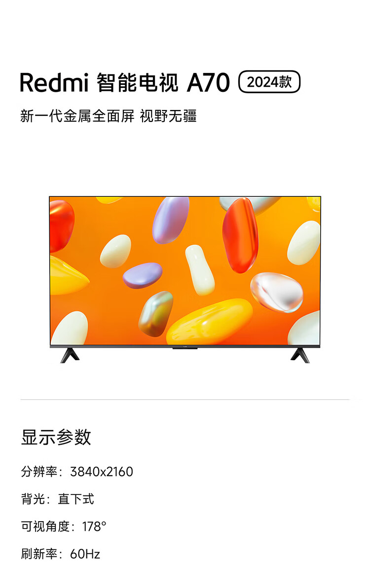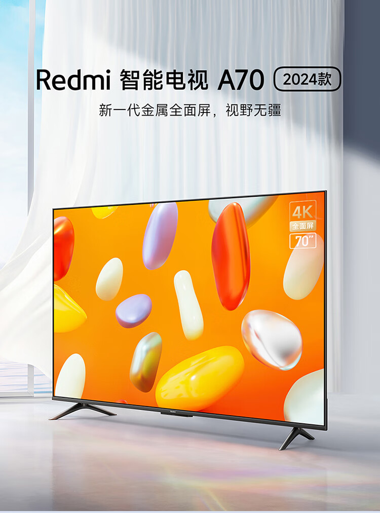 小米电视 Redmi 智能电视 A70 70英寸 2024款 4K超高清远场语音 金属全面屏 液晶护眼平板电视L70RA-RA 自营