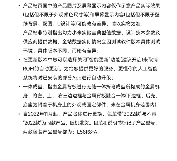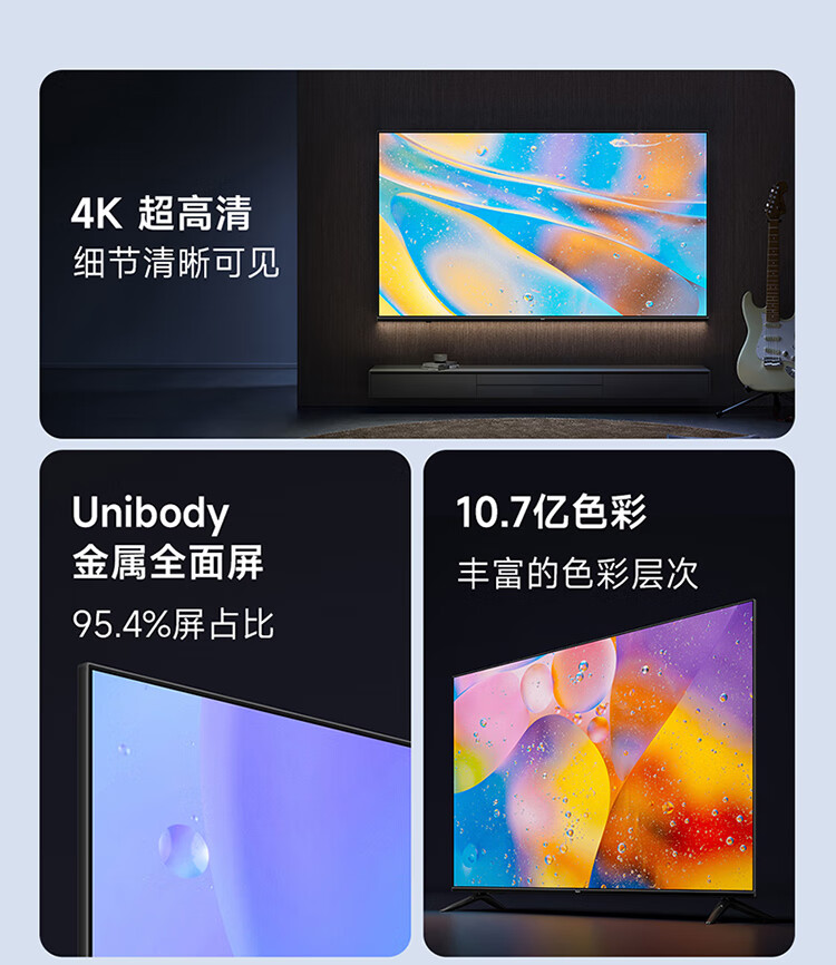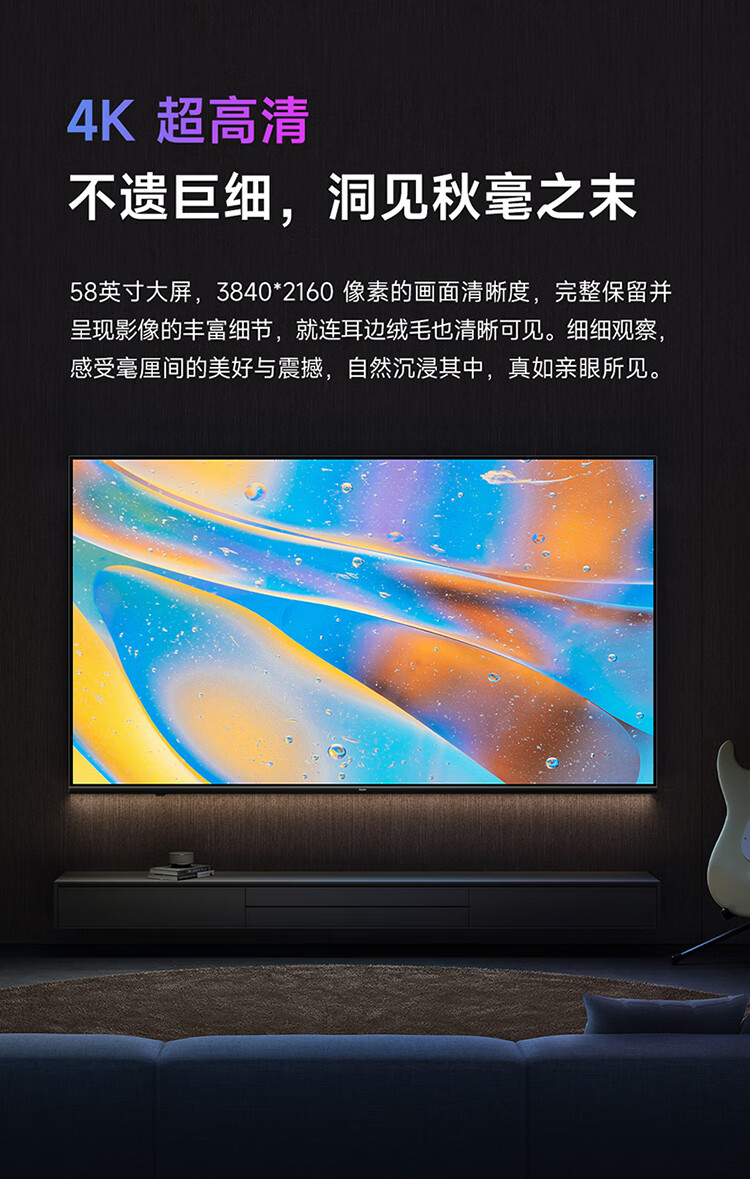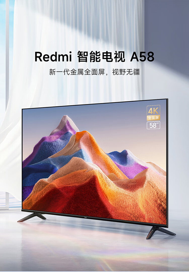 小米电视 Redmi A58 58英寸4K 超高清 金属全面屏电视 1.5G+8G 游戏智能液晶电视 L58R8-A 自营