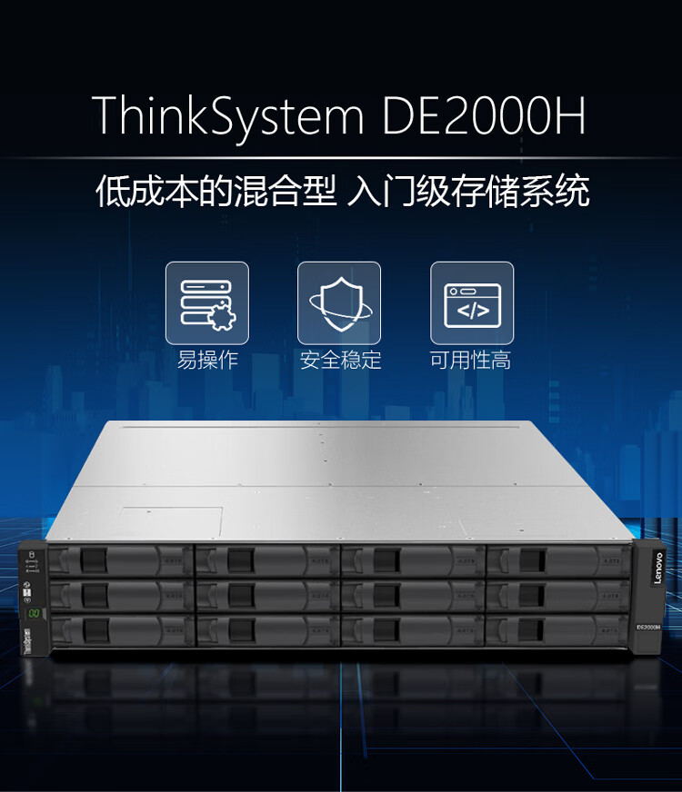 联想(Lenovo)ThinkSystem DE2000H存储 机架式2U SAN磁盘阵列存储服务器 小盘双控16G缓存/4块1.2T硬盘 自营