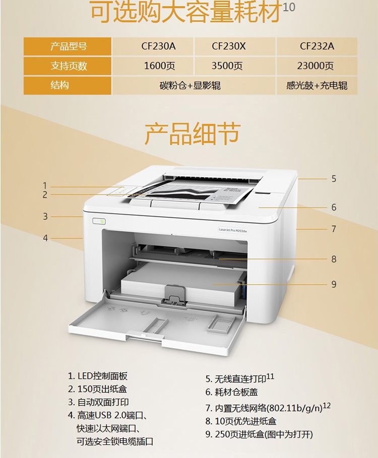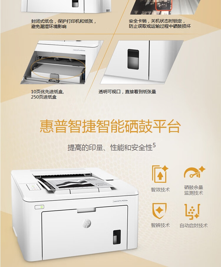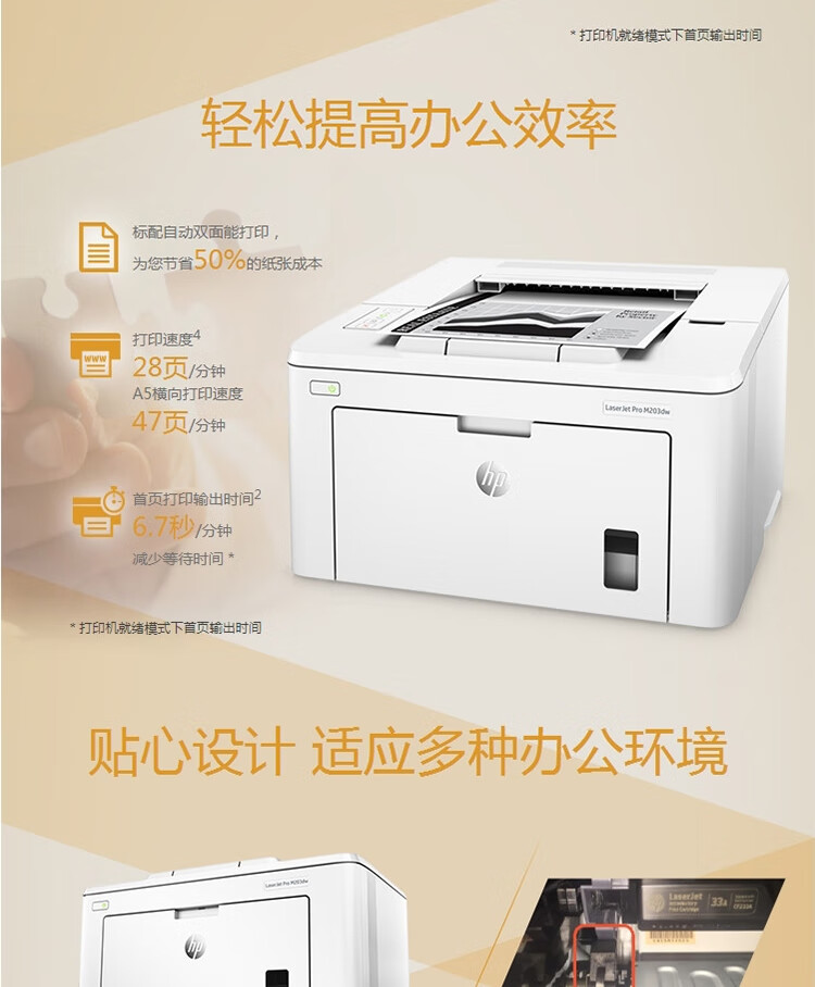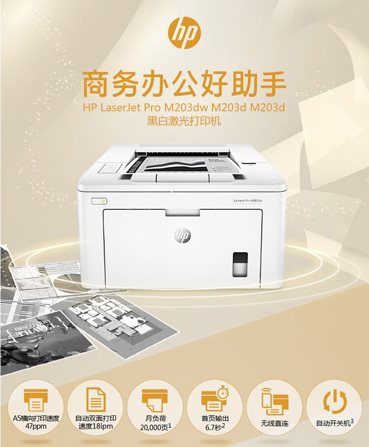 惠普(HP) M203DW A4黑白激光单功能打印机 (自动双面无线打印) 自营