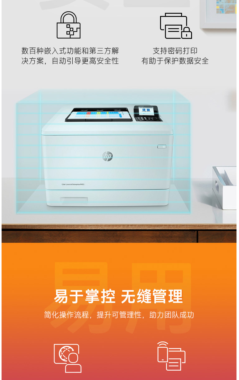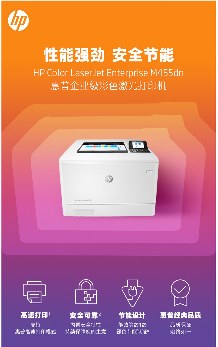 惠普(HP)M455dn A4彩色激光单功能打印机 自动双面打印 有线连接 自营