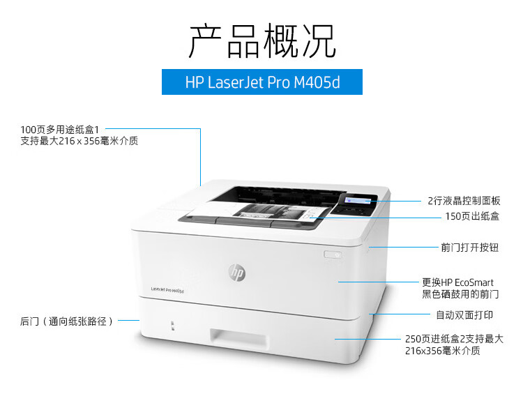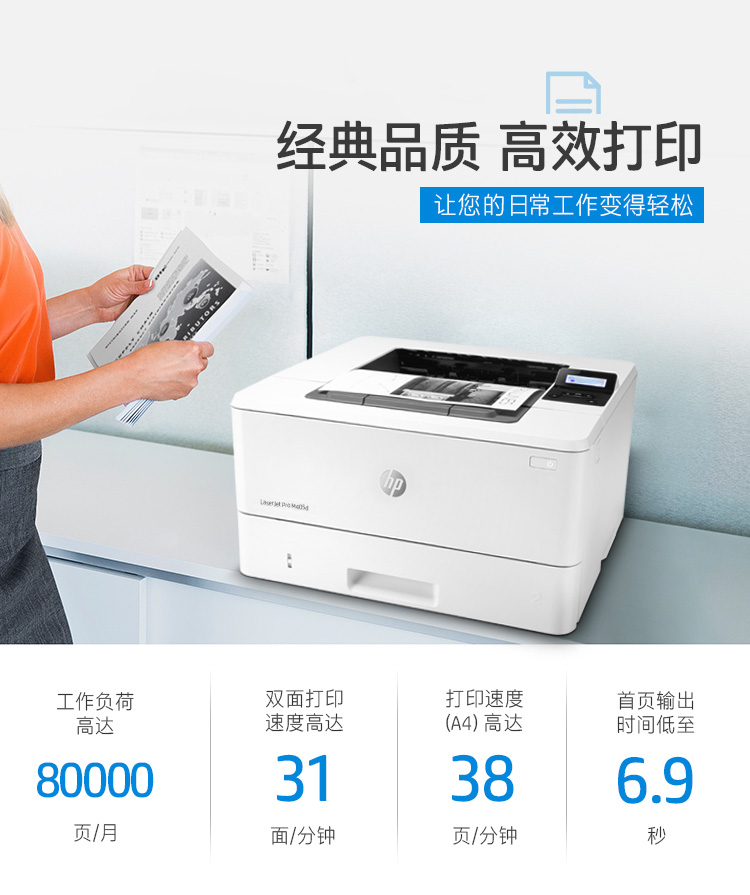 惠普(HP) M405n A4黑白激光单功能打印机 液晶显示屏 有线网络连接 自营