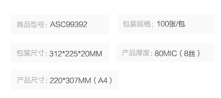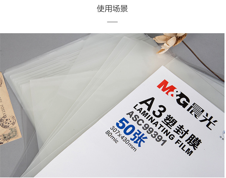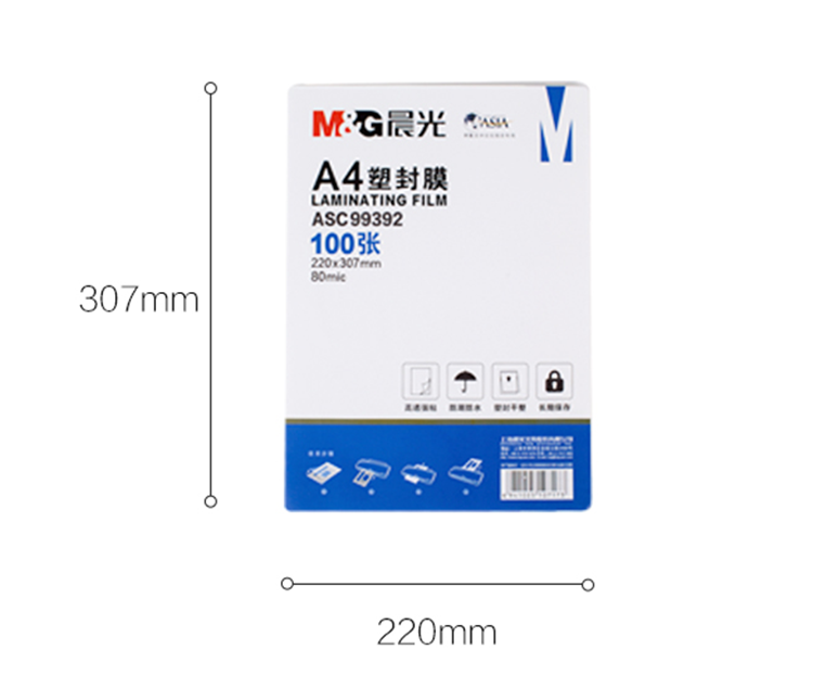 晨光(M&G)A4/100张透明高清塑封膜 80mic过塑膜 护卡膜 220*307mm照片塑封膜 ASC99392 自营