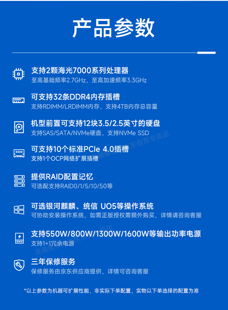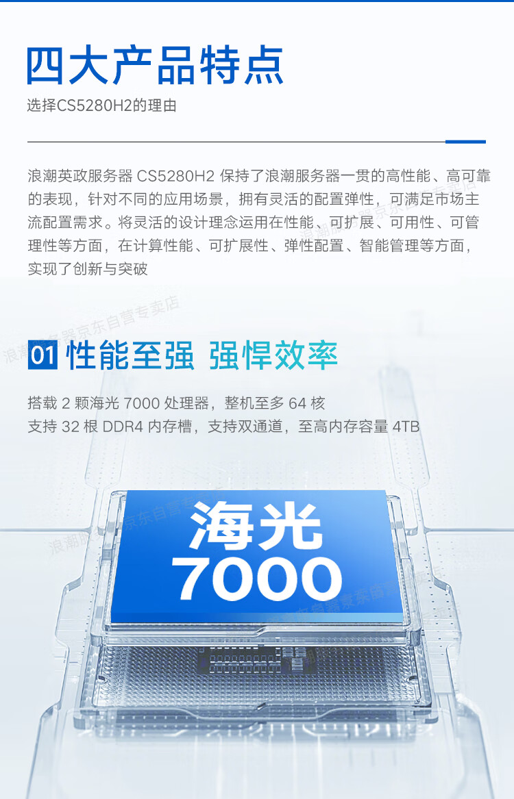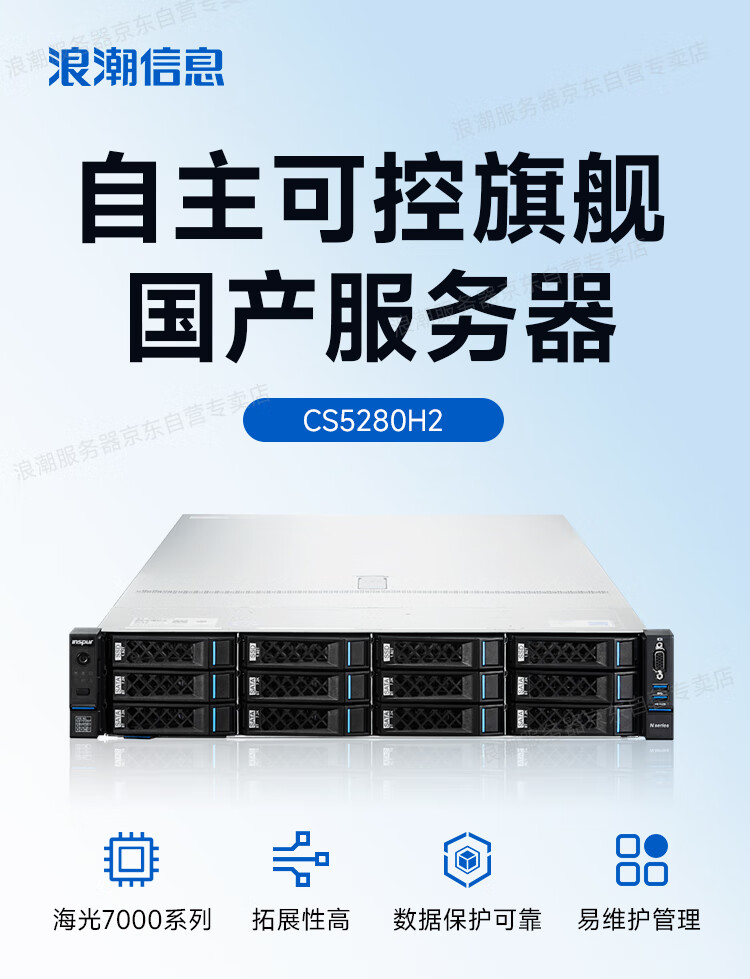 浪潮 CS5280H2机架式服务器 国产自主可控/硬盘不返还 2*海光C86-7390 32C 2.7G 32G丨4*2.4T SAS丨2G阵列卡 自营