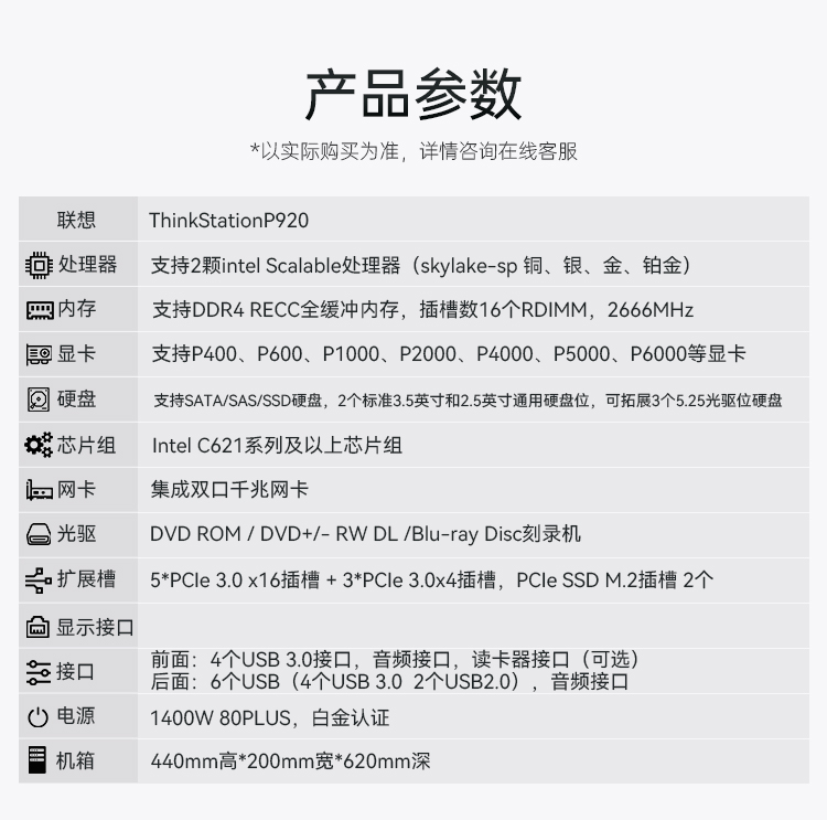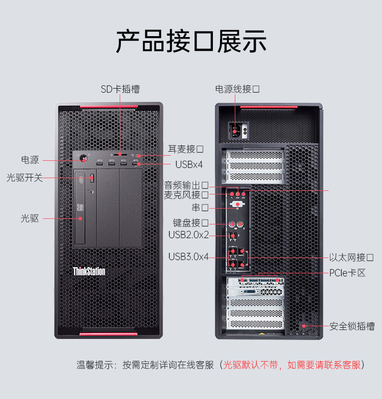 ¥5999.00联想(ThinkStation)P920塔式图形工作站深度学习 2*金牌6248R/256G内存/1024G固态+12T机械/RTX3090 改配