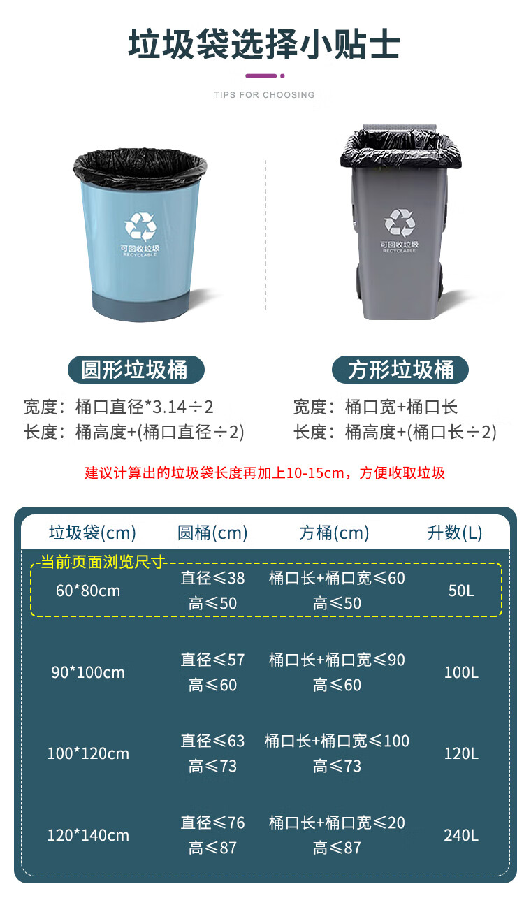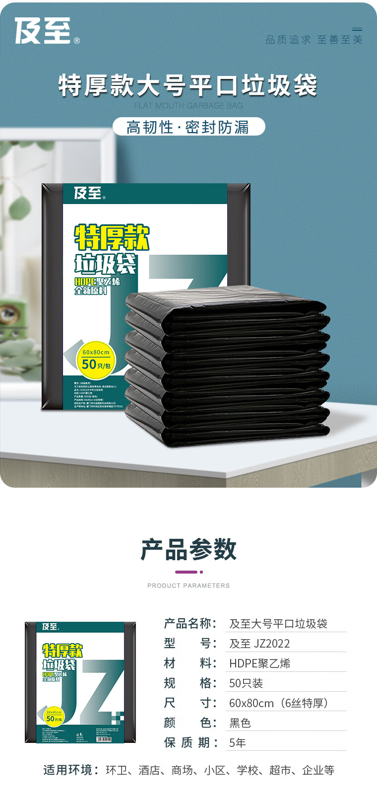 及至 60*80cm黑色大号垃圾袋6丝特厚款(50只/包)JZ2022 自营