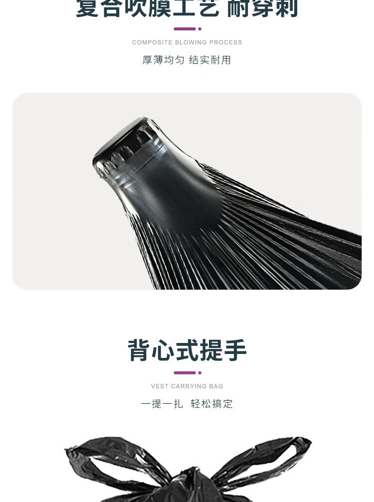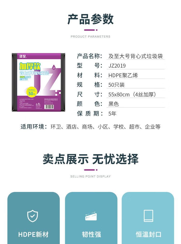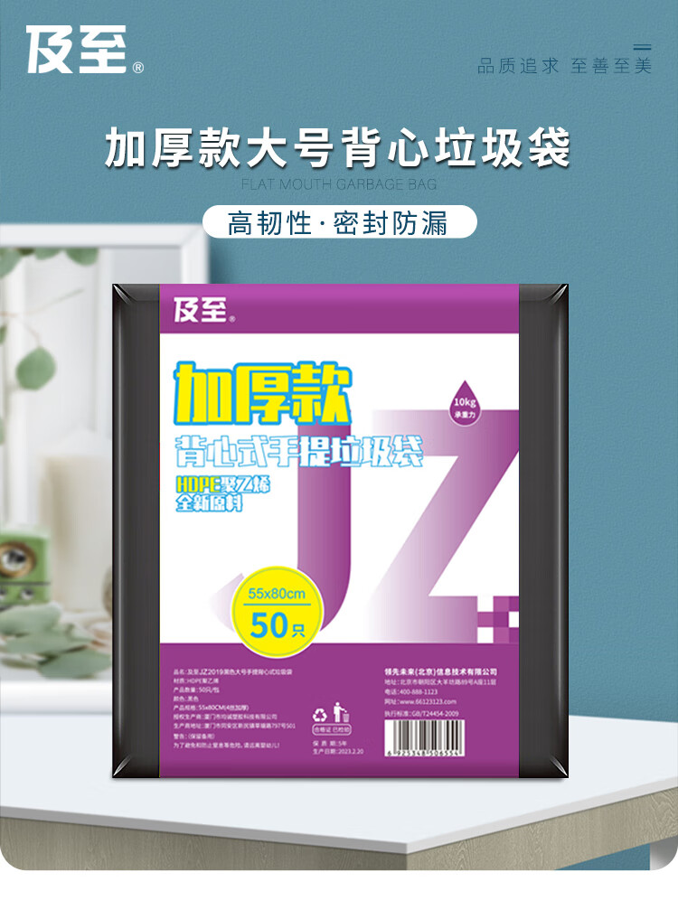 及至 55*80cm黑色大号手提背心式垃圾袋4丝加厚款(50只装)JZ2019 自营