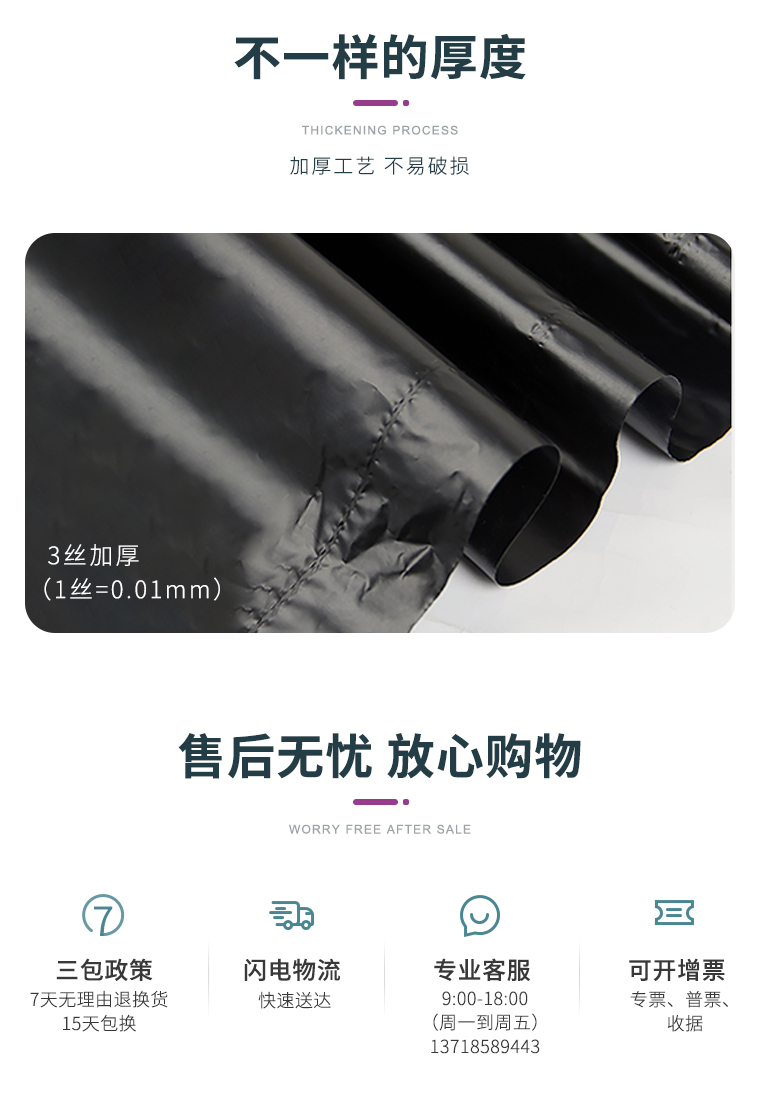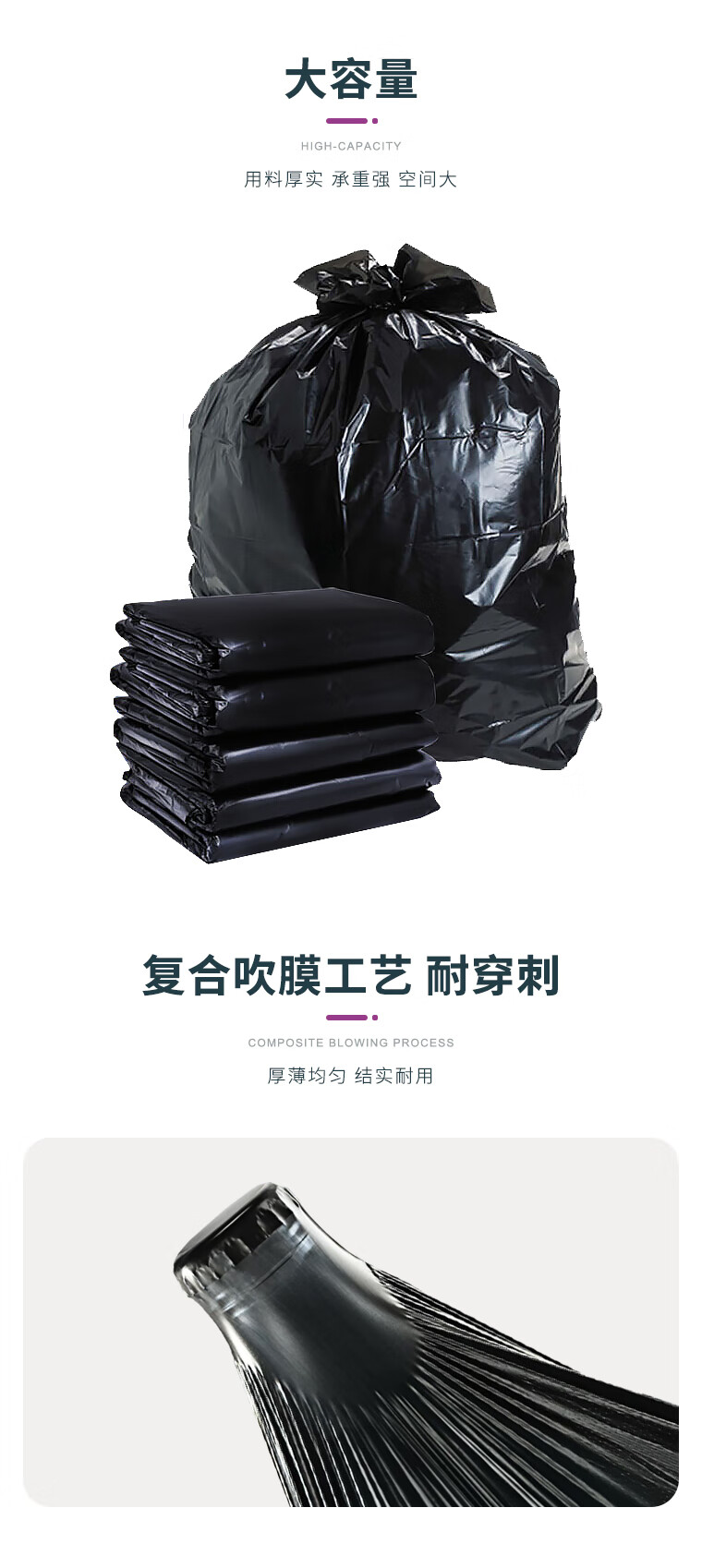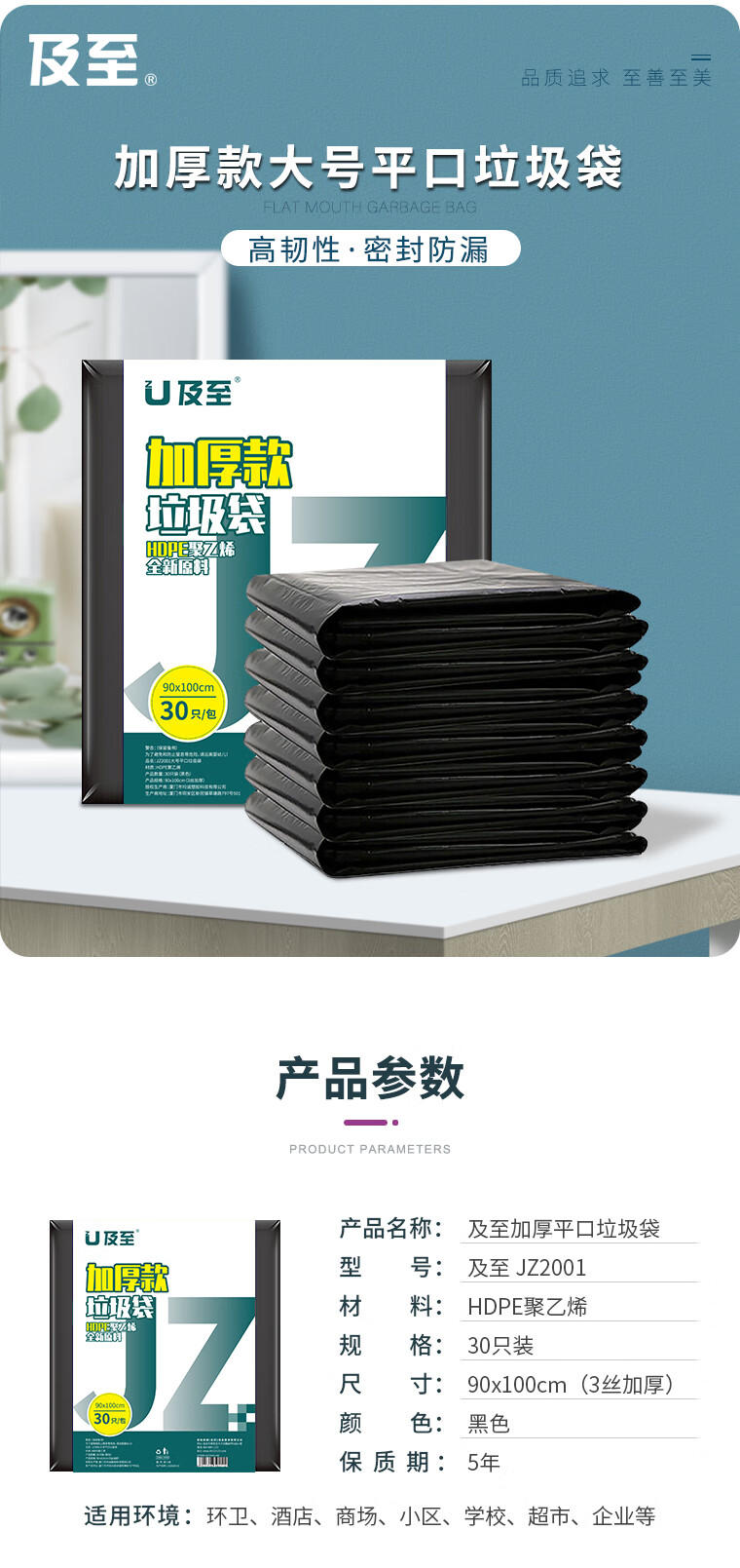 及至 90*100cm黑色大号垃圾袋3丝加厚款(30只/包)JZ2001 自营
