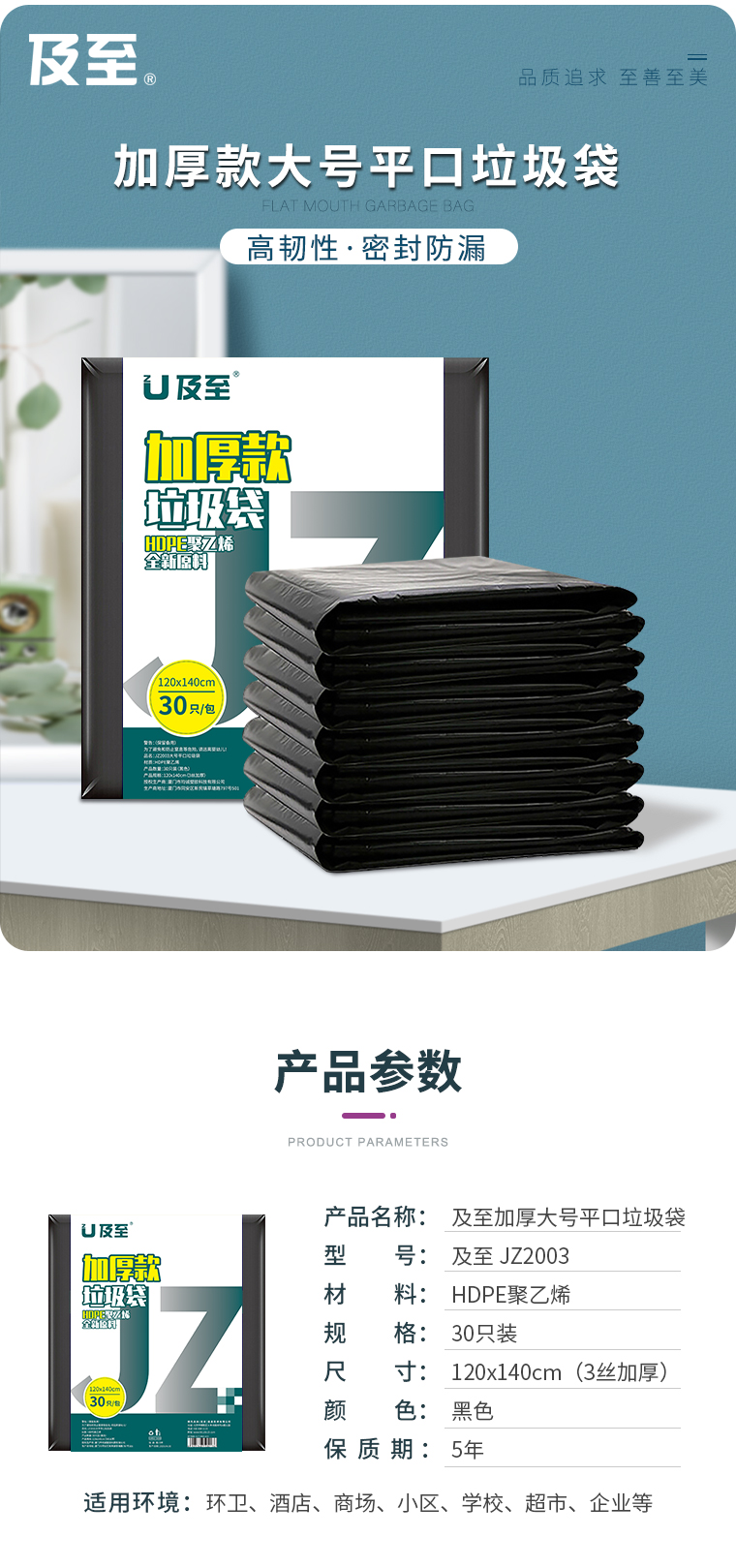 及至 120*140cm黑色大号垃圾袋3丝加厚款((30只/包)JZ2003 自营
