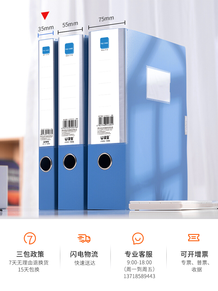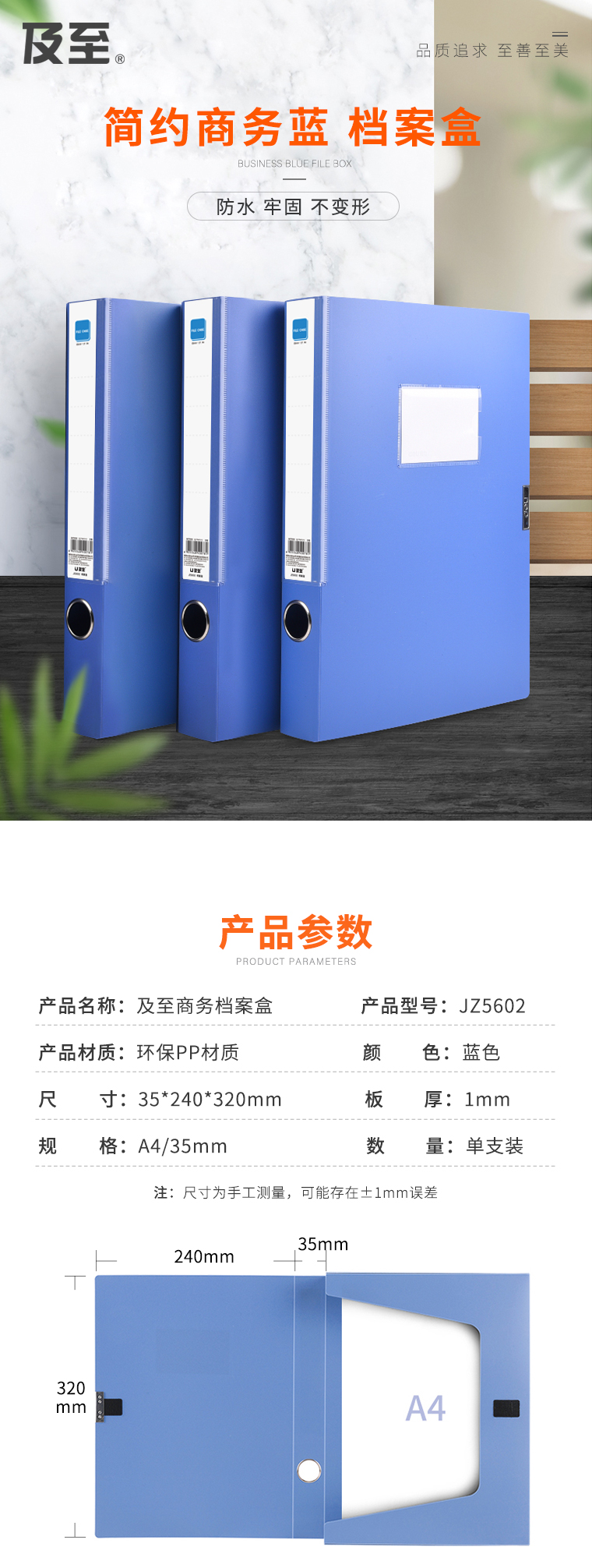 及至 JZ5602加厚档案盒35mm(蓝色) 自营