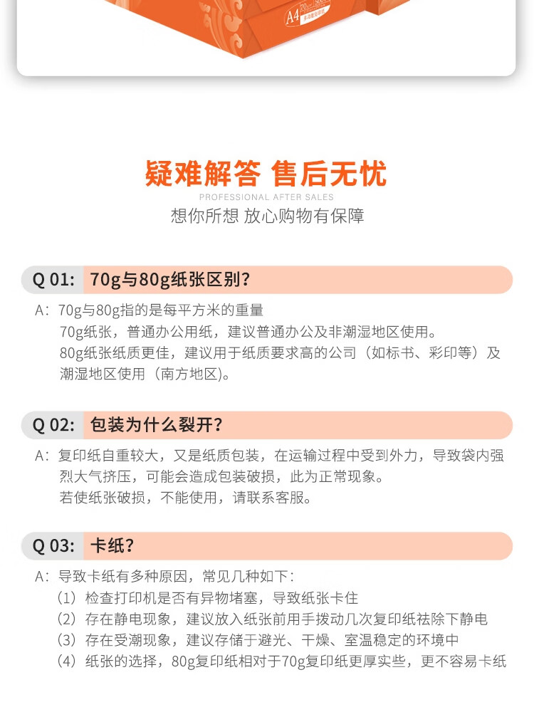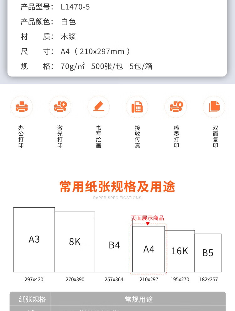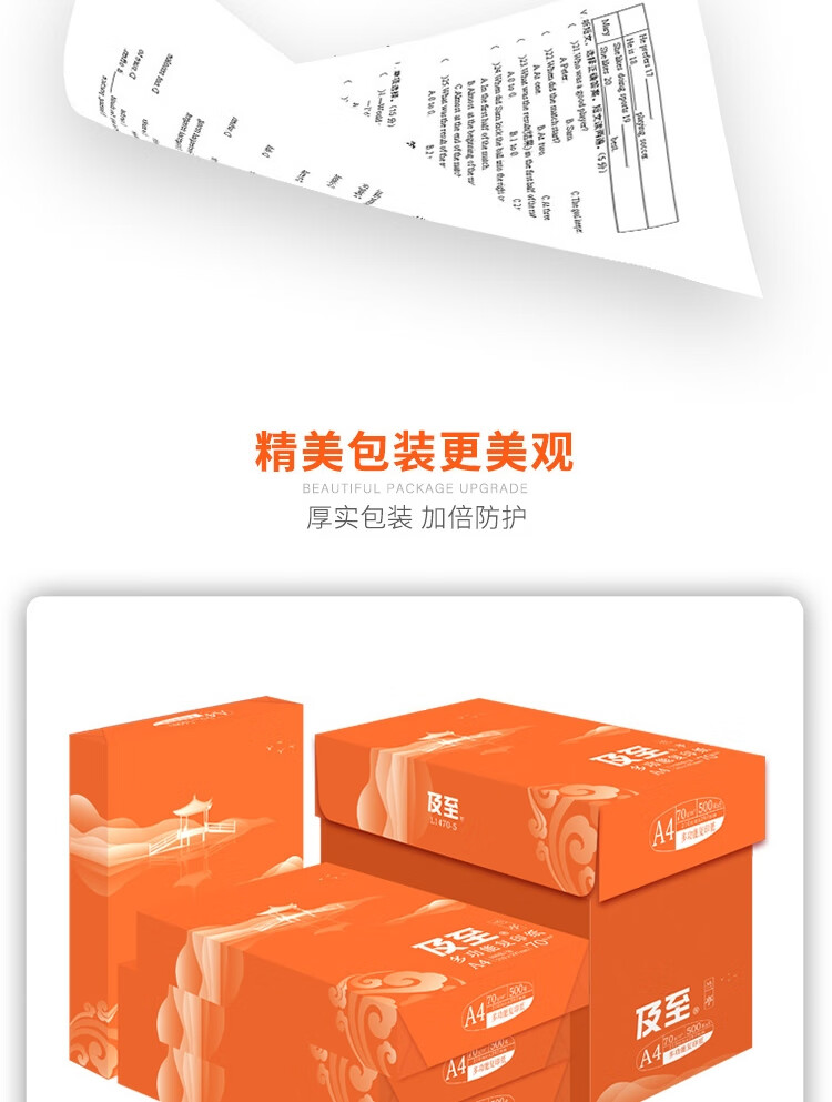及至 L1470-5 橙及至复印纸 A4 70g 500张/包*5包 自营