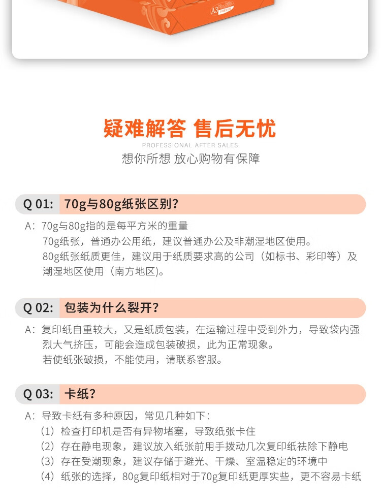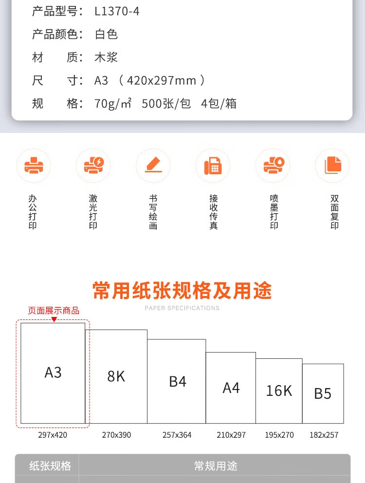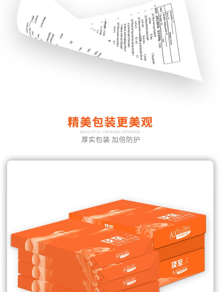 及至 L1370-4 橙及至复印纸 A3 70g 500张/包*4包 自营