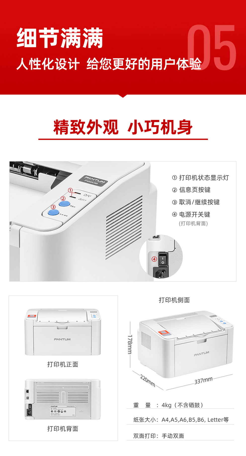 奔图P2206W青春版P2206NW P2210W家庭办公作业激光打印机A4学生打印家用单功能打印机 经典款丨P2206W 青春版无线打印 标准版 自营