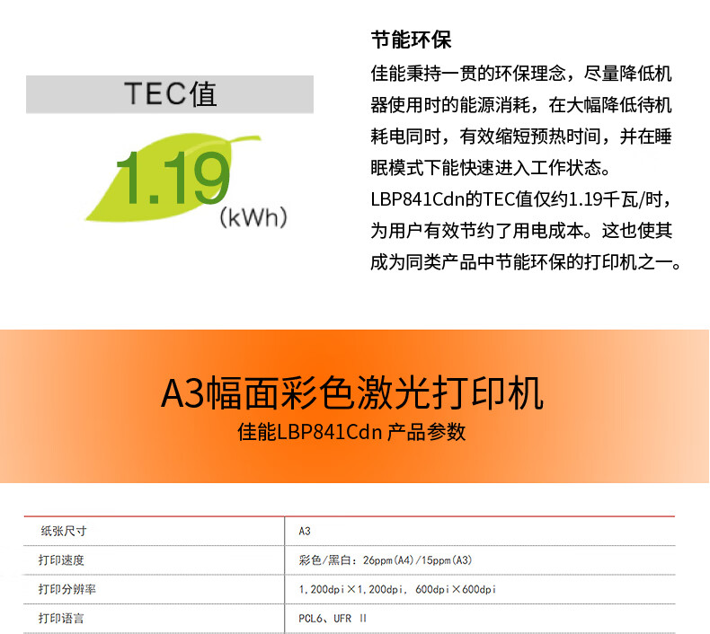 佳能(Canon) LBP841Cdn A3幅面彩色激光打印机自动双面商用 自营