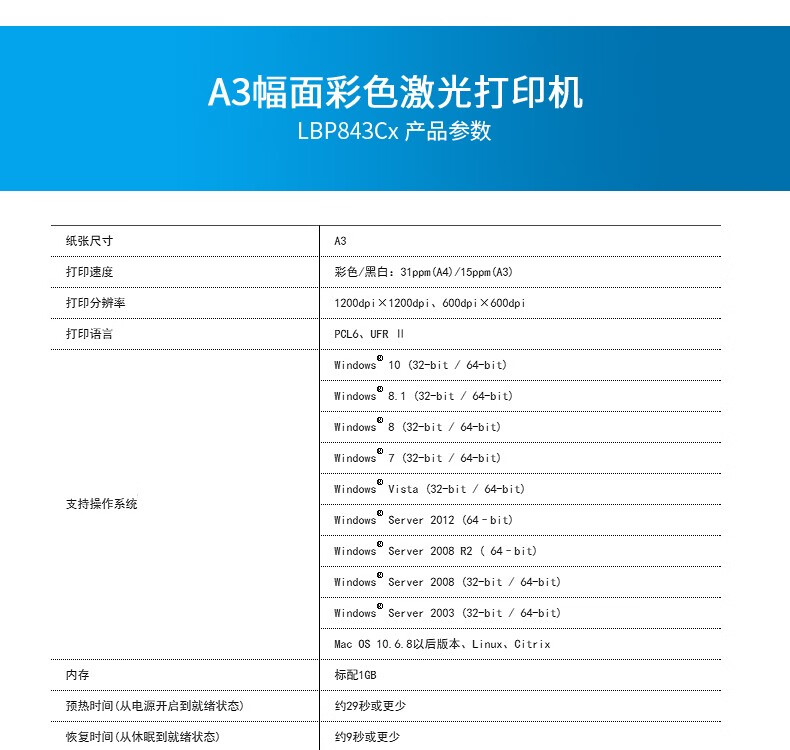 佳能(Canon) LBP843Cx A3幅面彩色激光网络打印机 双面打印/商务办公 自营