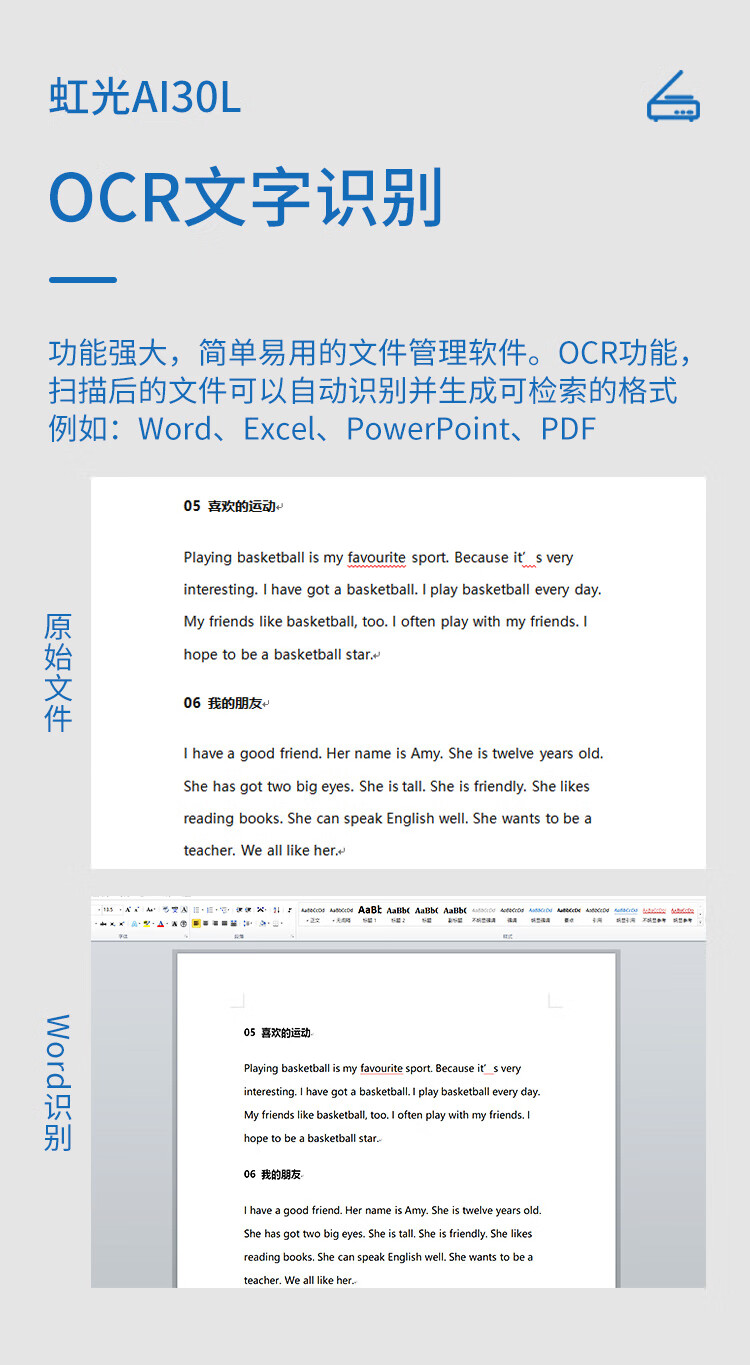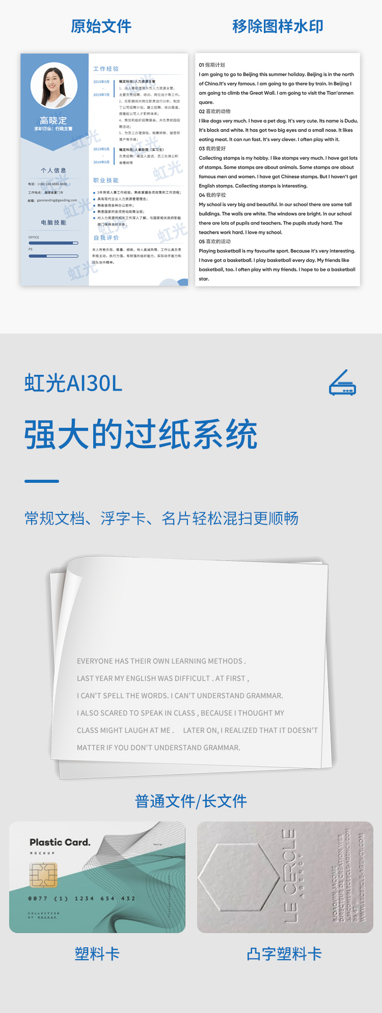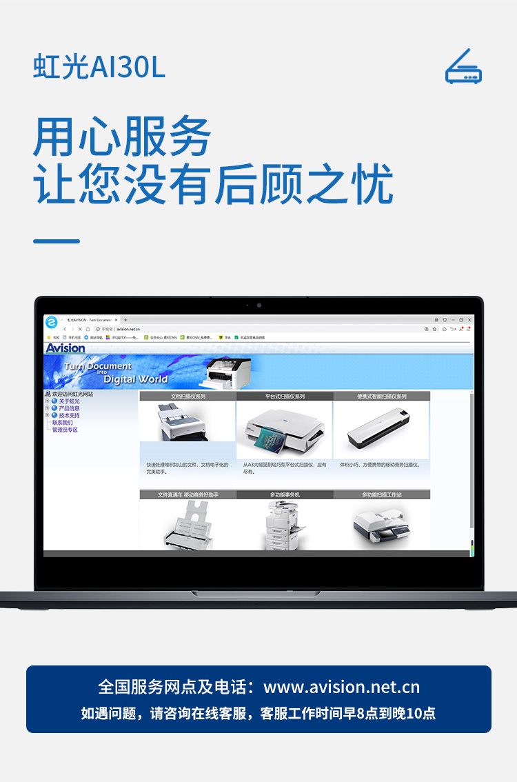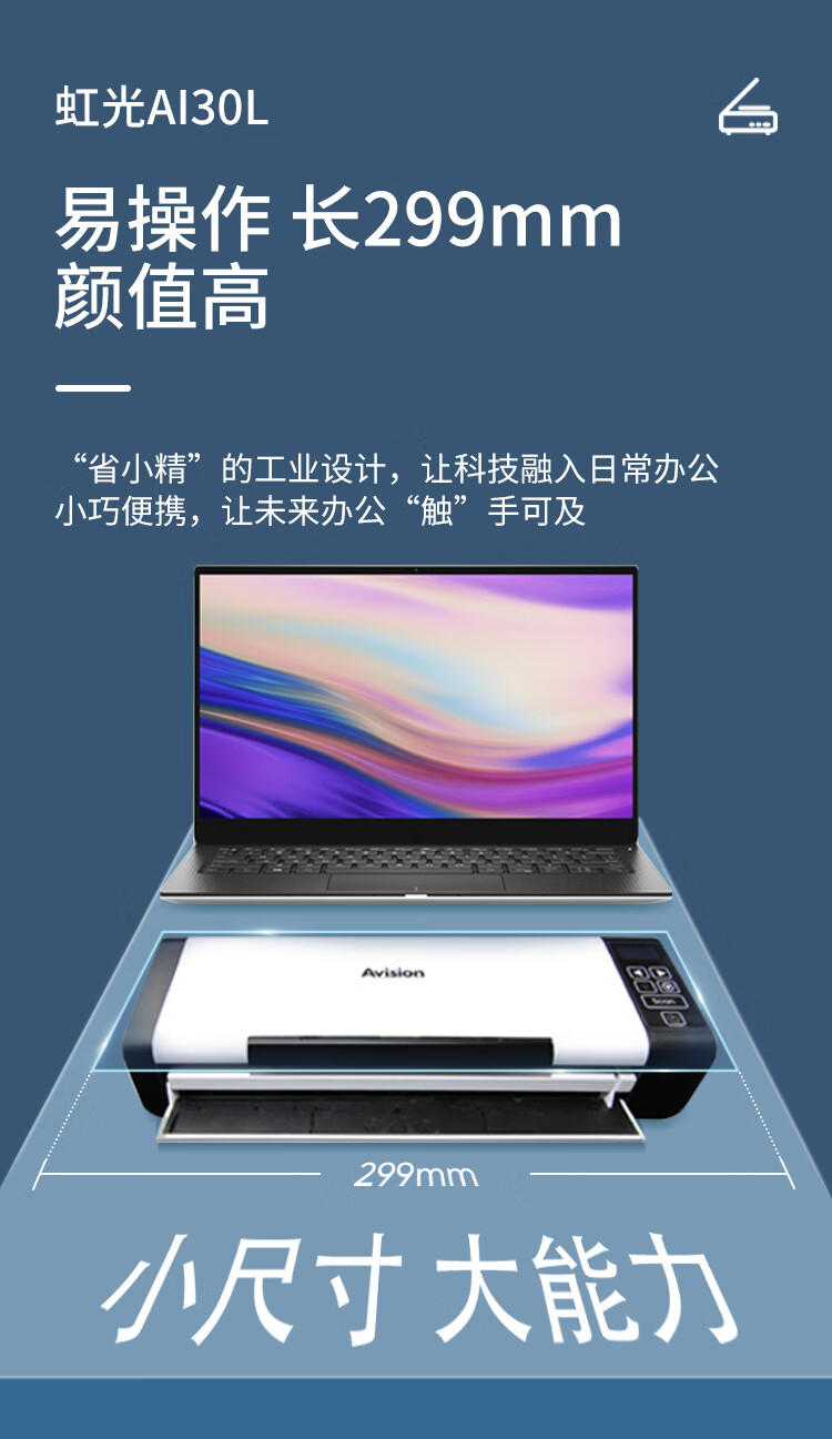 虹光(Avision)馈纸式扫描仪A4双面文件连续自动高速扫描AI30L 可扫描办公文档卡片等 支持国产系统 自营