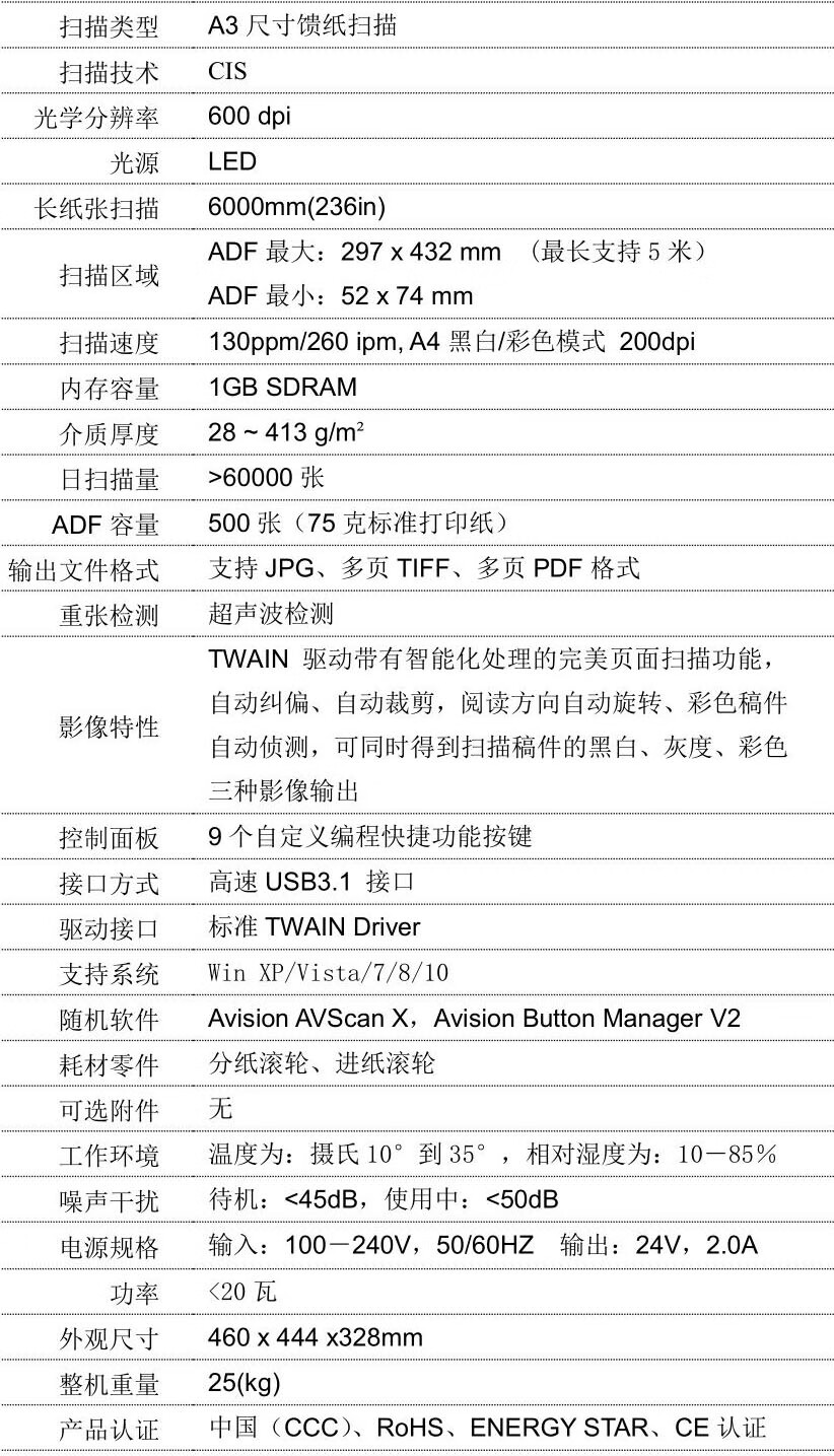 虹光(Avision)馈纸式扫描仪A3彩色双面文件连续自动高速扫描Ai3131S 可扫描办公文档卡片等 支持国产系统 自营