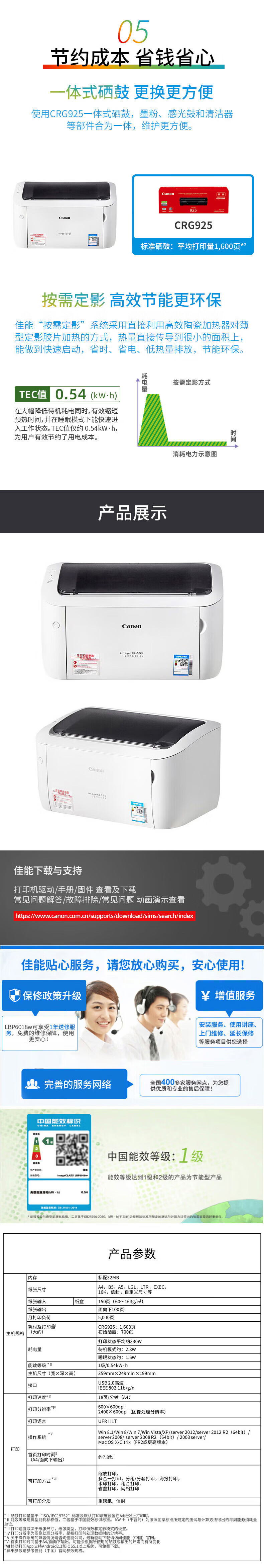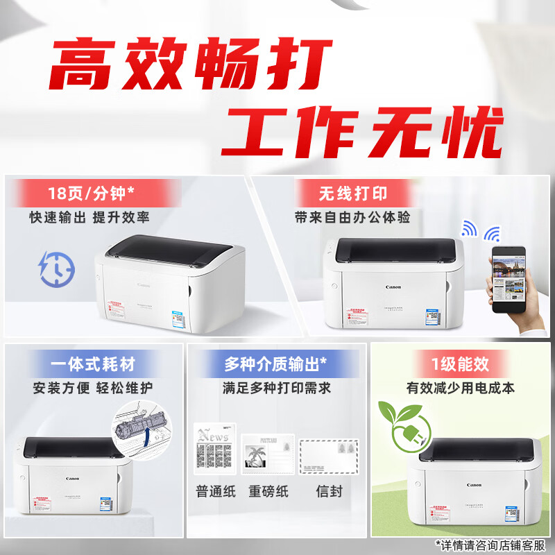 佳能(Canon)LBP6018w A4幅面无线黑白激光单功能打印机(快速打印/节能环保 家用/商用) 自营